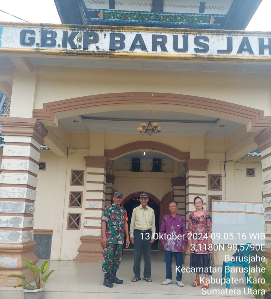 Pada hari minggu inipun (13/10) sejak pagi hingga siang Serka Reka Juli Rahmat yang bertugas sebagai Babinsa di Koramil 01/Barusjahe jajaran Kodim 0205/Tanah Karo sesuai perintah Kapten Inf Jonson E. Sembiring selaku Danramil agar melaksanakan kegiatan Komsos bersilaturahmi dan Pam Ibadah Kebaktian Minggu di Gereja Batak Karo Protestan (GBKP) Barusjahe Jalan Gotong Royong Desa Barusjahe Kecamatan Barusjahe Kabupaten Karo-Sumut dalam kegiatan ini Babinsa sambil imbauan menjaga keamanan dan ketertiban juga menjaga kebersihan lingkungan maupun tetap menjaga kerukunan hidup antar warga serta menjaga toleransi antar umat beragama juga waspada bencana alam.