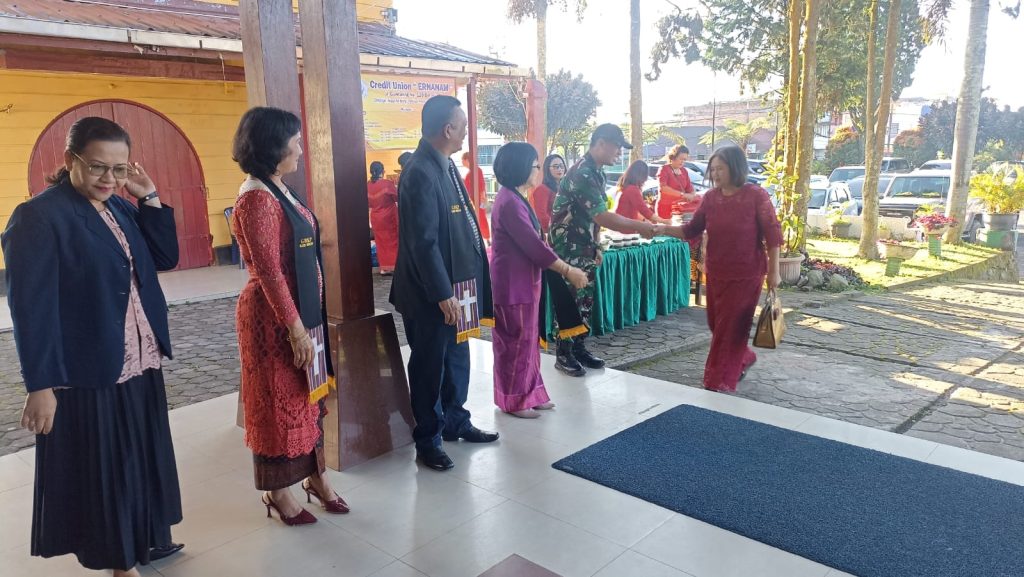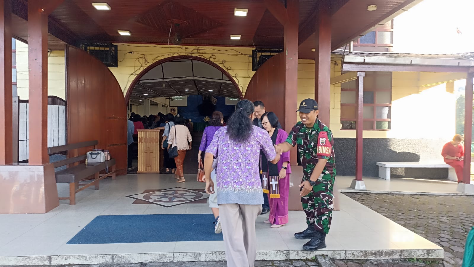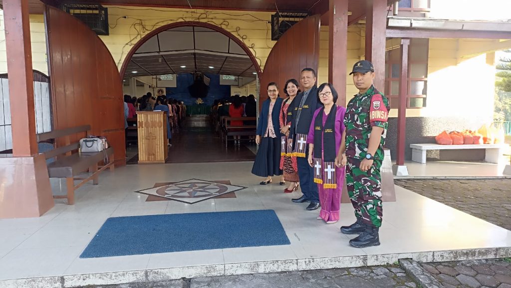 Tanah Karo. Minggu 03/08/2024. Bersiliturahmi Dalam rangka Komunikasi Sosial atau lebih dikenal Komsos yang dilaksanakan oleh para Babinsa pada hari minggu ini (03/11) dengan pihak Pengurus Gereja sambil membantu Pengamanan Ibadah Kebaktian Minggu di GBKP (Gereja Batak Karo Protestan) Kota Berastagi Jalan Pasar Buah-Bukit Gundaling Kelurahan Gundaling-I Kecamatan Berastagi Empat Kabupaten Karo-Sumatera Utara dilaksanakan oleh Serka Muryono Imam bertugas sebagai Babinsa di Koramil 03/Berastagi jajaran Kodim 0205/Tanah Karo sesuai perintahkan Mayor Cke Thamrin Vincent Bangun selaku Danramil.