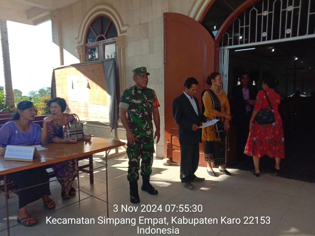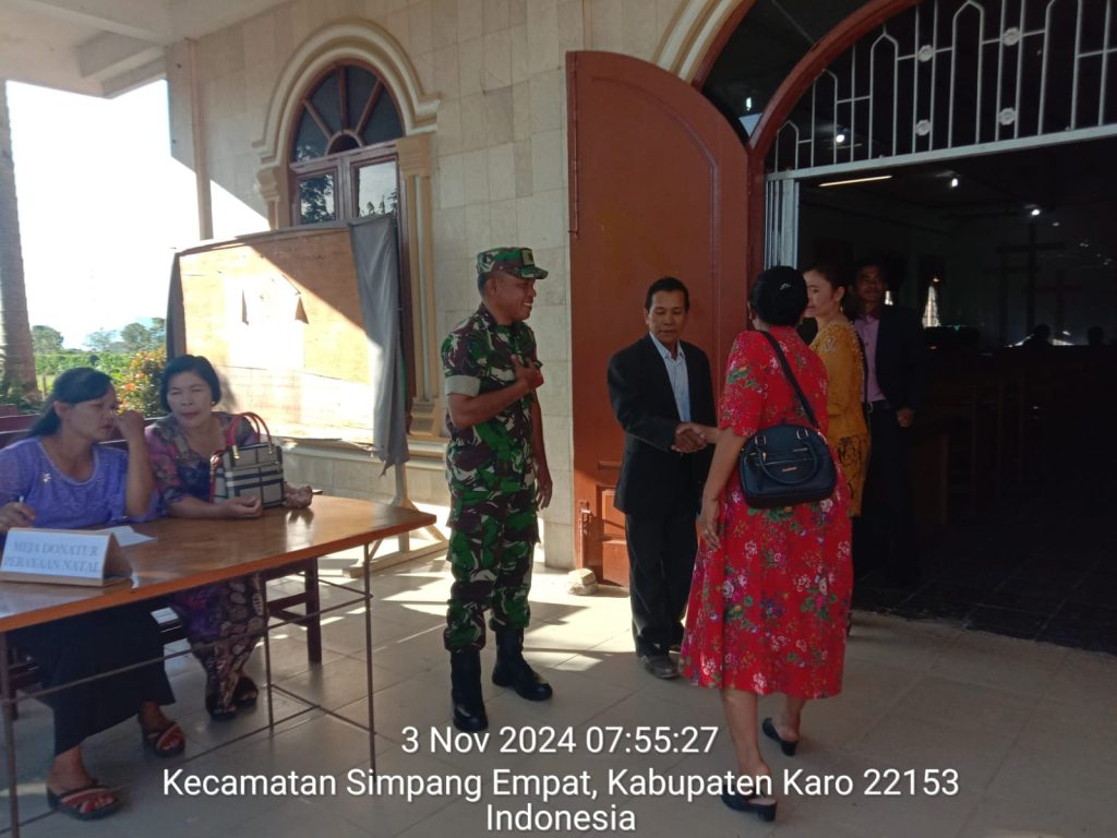 Pada hari minggu ini (03/11) kegiatan tersebut juga dilaksanakan oleh Serka Sudino Sihombing yang bertugas sebagai Babinsa sesuai perintah dari Danramil 04/Simpang Empat jajaran Kodim 0205/Tanah Karo Kapten Czi Menson Tarigan untuk bersinergi dengan Majelis Gereja melaksanakan kegiatan Pengamanan Ibadah kebaktian Minggu di GBKP (Gereja Batak karo Protestan) Ndokum Siroga Jalan Berastagi-Tiganderket Desa Ndokum Siroga Kecamatan Simpang Empat Kabupaten Karo-Sumatera Utara, juga dalam kegiatan ini sambil Komsos bersilaturahmi dan menyapa warga.