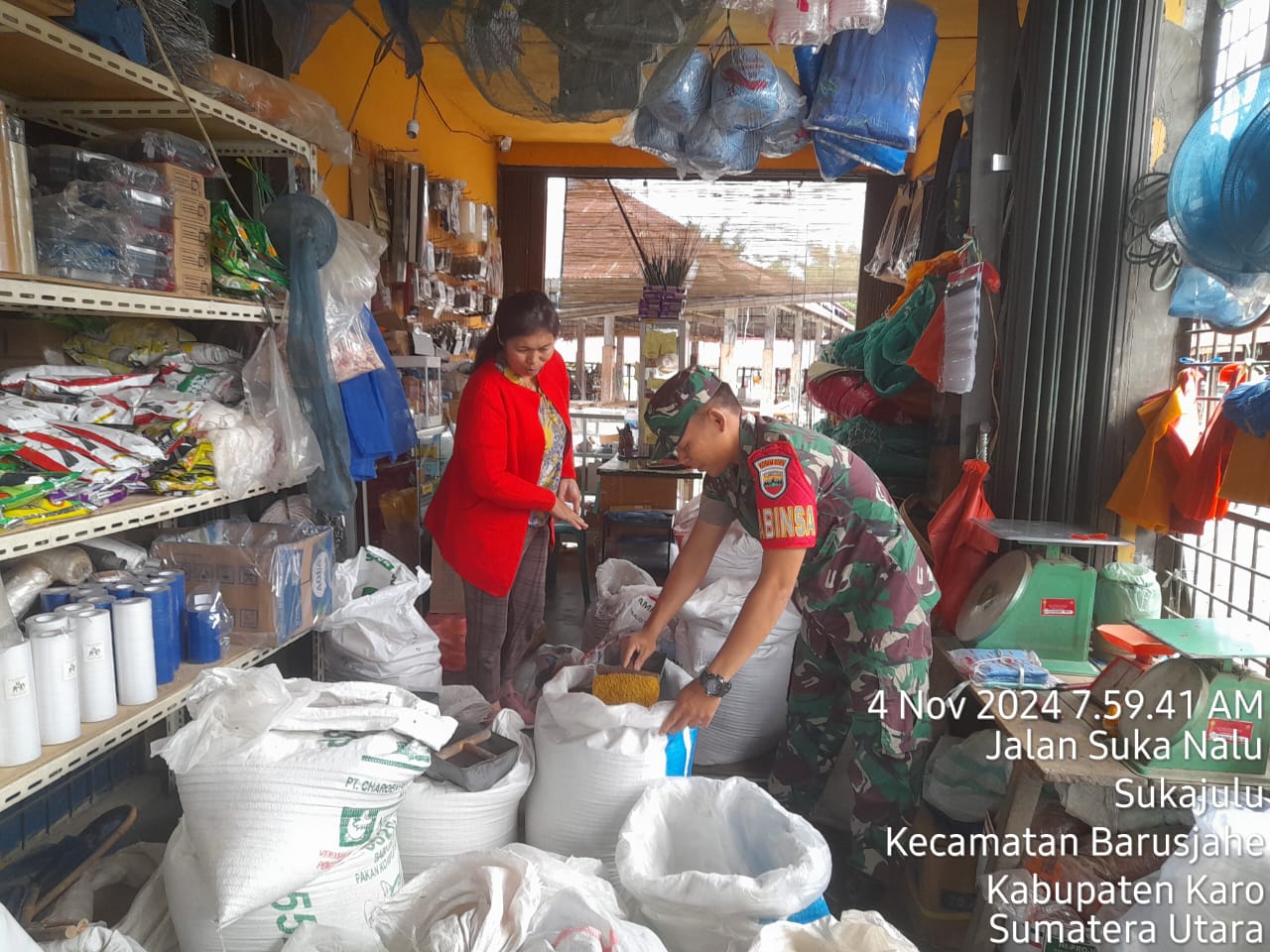 Serda Yayat Sudrajat bersama Pratu Iqbal Aulian sebagai Babinsa Koramil 01/Barusjahe jajaran Kodim 0205/Tanah Karo sesuai peritah Danramil Kapten Inf Jonson E. Sembirng pada hari ini (04/11) melaksanakan Komsos sambil mengecek ketersediaan stok dan harga Pakan Ternak maupun obat-obatan pertenakan di wilayah binaan untuk mencegah terjadinya kesulitan warga dalam mendapatkan barang-barang tersebut untuk ternak milik mereka akibat kelangkaan dan mahalnya harga.