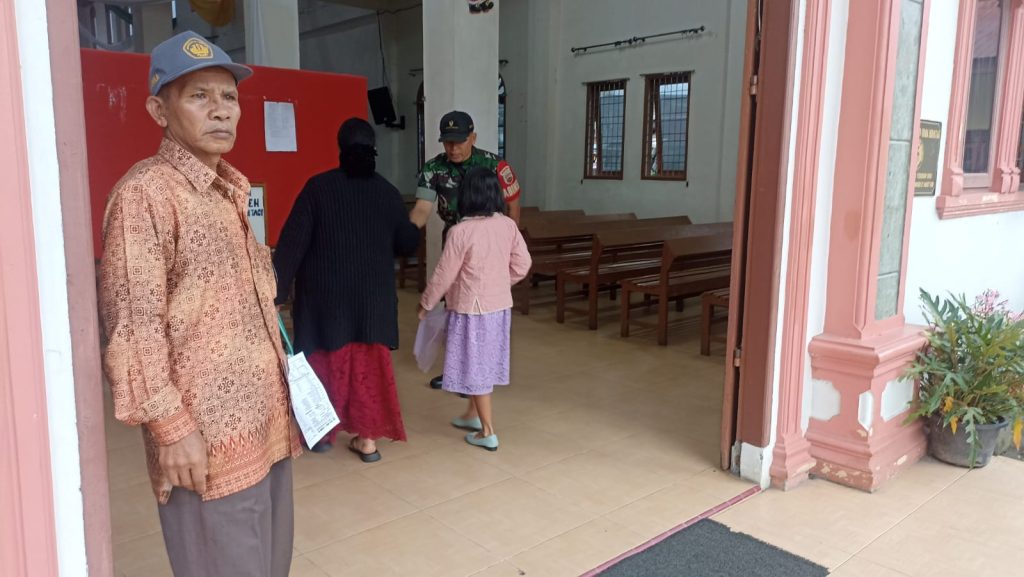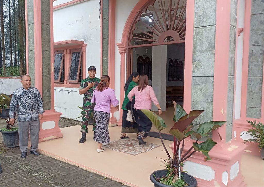 Babinsa Koramil 03/Berastagi  Komsos Sambil Pam Kebaktian Minggu Di HKBP Kota Berastagi