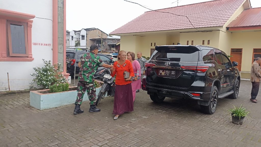 Sertu Tulus Siahaan sebagai Babinsa di Koramil 03/Berastagi juga mendapat perintah dari Mayor Cke Thamrin Vincent Bangun selaku Danrami pada hari minggu ini (17/11) melaksanakan kegiatan  Komunikasi Sosial bersilaturahmi dengan Jemaat dan  Majelis Gereja sambil imbauan juga dalam rangka kegiatan membantu Pengamanan Ibadah Kebaktian Minggu di Gereja HKBP (Huria Kristen Batak Protestan) Kota Berastagi Jalan Udara Kelurahan Gundaling-II Kecamatan Berastagi Kabupaten Karo-Sumatera Utara.