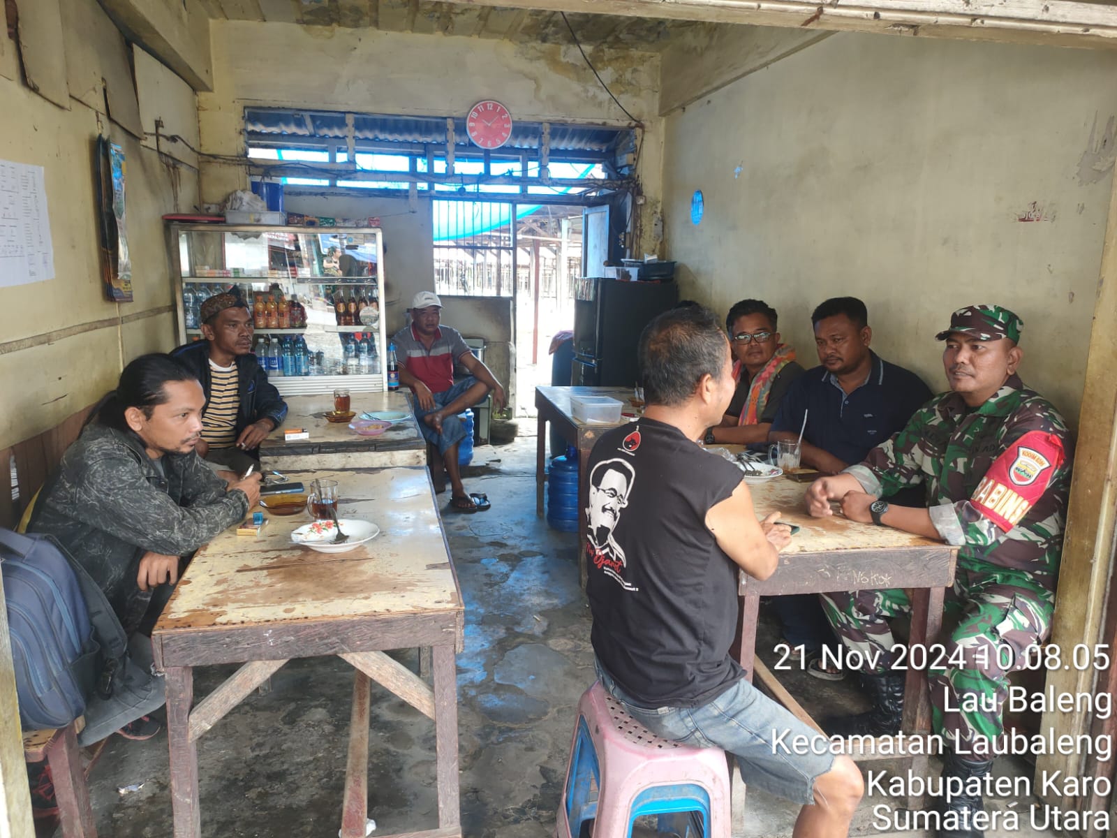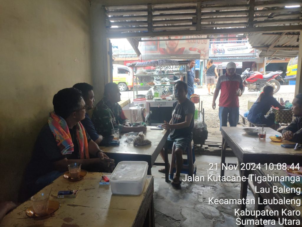 Serka M. Dian sebagai Babinsa Koramil 09/Laubaleng melaksanakan kegiatan Patroli wilayah binaan sambil Komsos (Komunikasi Sosial) bersilaturahmi dan menyampikan imbauan kepada warga yang sedang berada di Kedai Kopi Mama Tengah Jalan Kutacena Desa Laubaleng Kecamatan Laubaleng Kabupaten Karo-Sumatera Utara, juga pelaksanana kegiatan ini sesuai perintah dan arahan dari Danramil Kapten Inf Gandhi N. Hartanto.