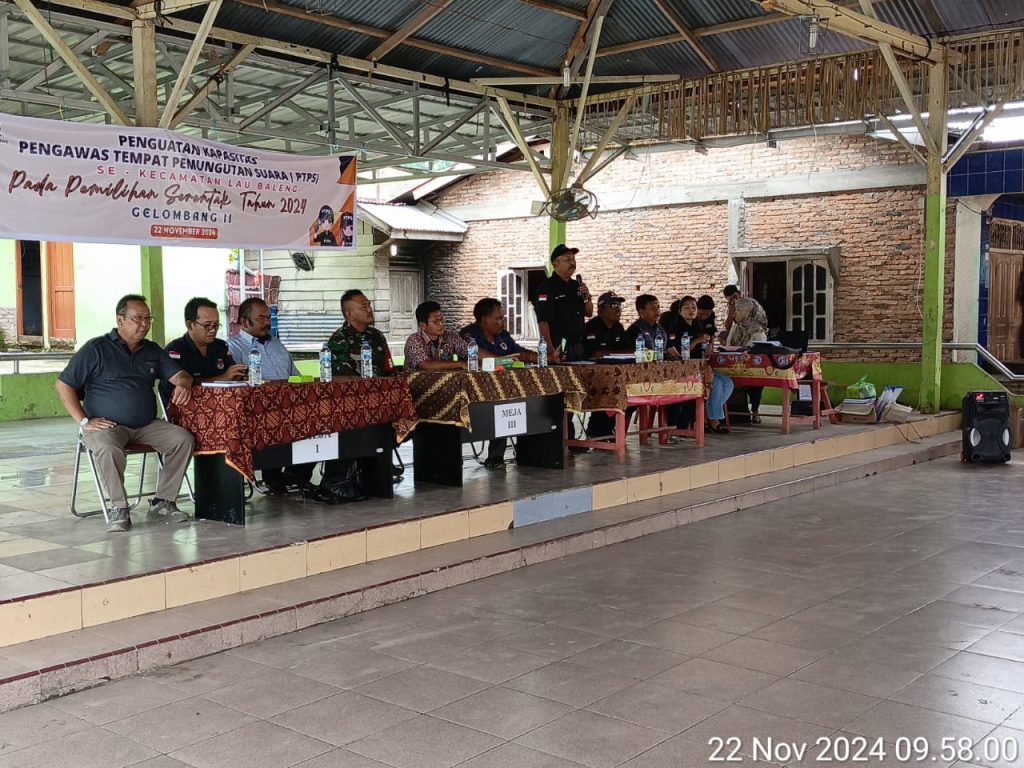 Tanah Karo. Jumat 22/11/2024. Serka M. Dian Babinsa Koramil 09/Laubakeng jajaran Kodim 0205/Tanah Karo bertempat di Jambur/Balai Desa Jalan Kutacene Desa Tanjung Gunung Kecamatan Laubaleng Kabupaten Karo-Sumatera Utara menghadiri pelaksanaan kegiatan Penguatan Kapasitas Pengawas TPS (Tempat Pemilihan Suara) dalam rangka Pemilihan Gubernur dan Wakil Gubernur maupun Bupati dan wakil Bupati pada pemilihan serentak Tahun 2024 se Kecamatan Laubaleng (22/11).