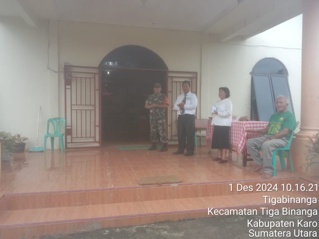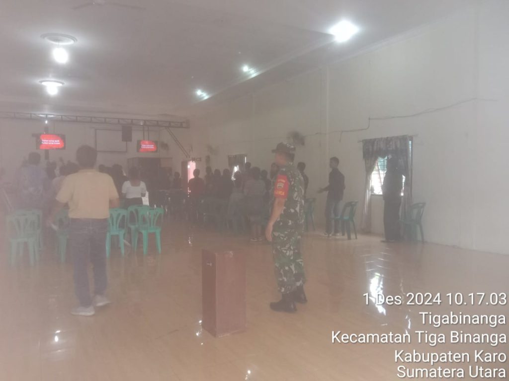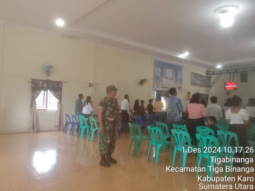 Tanah Karo. Minggu 01/12/2024. Upaya dan usaha menjaga situasi wilayah binaan aman dan kondusif setiap saat maupun saat warganya melaksanakan ibadah, maka Kapten Inf J.M.H Tampubolon selaku Danramil 08/Tigabinanga jajaran Kodim 0205/Tanah Karo perintahkan para Babinsanya melaksanakan Pawilbin dan Komsos juga melaksanakan pengamanan Ibadah Kebaktian Minggu termasuk Serka Iskandar Nasution juga melaksanakannnya di GBI (Gereja Bethel Indonesia) Tigabinanga Jalan Kutacane Kelurahan Tigabinanga Kecamatan Tigabinanga Kabupaten Karo-Sumatera Utara (01/12).