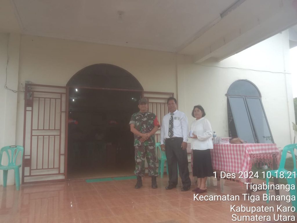 Serka Iskandar Nasution sebagai Babinsa Koramil 08/Tigabinanga dalam melaksanakan kegiatan Komsos bersilaturahmi dengan Majelis GBI Tigabinanga sambil membantu Pengamanan Ibadah Kebaktian Minggu mereka bersinergi sejak pukul 07.00 WIB hingga selesai, juga dalam kegiatan pengamanan ini Babinsa menyampaikan imbauan kepada jemaat agar tetap menjaga keamanan, ketertiban dan kebersihan lingkungan, juga tetap menjaga kerukunan hidup antar warga dan tetap waspada bencana alam.