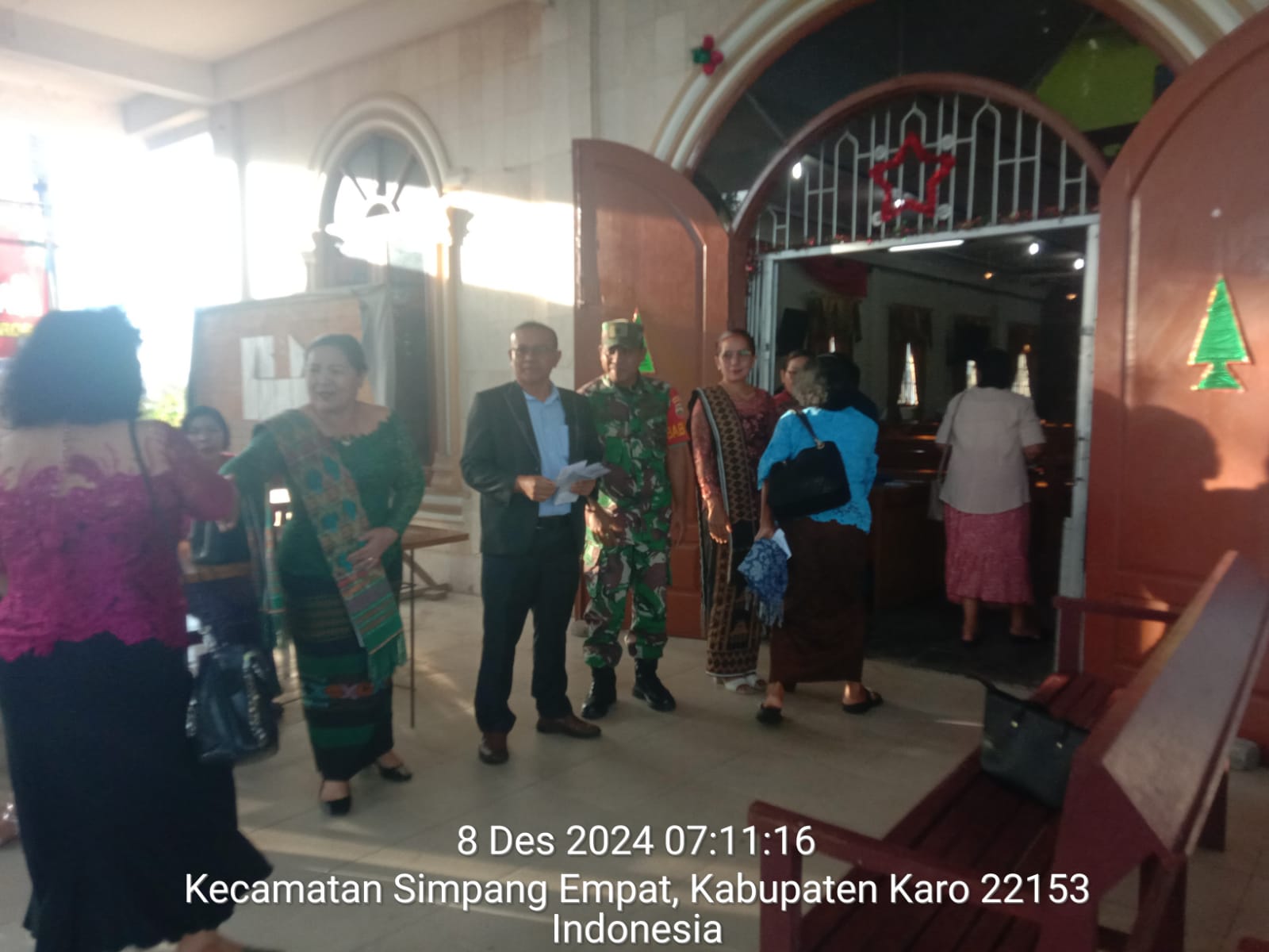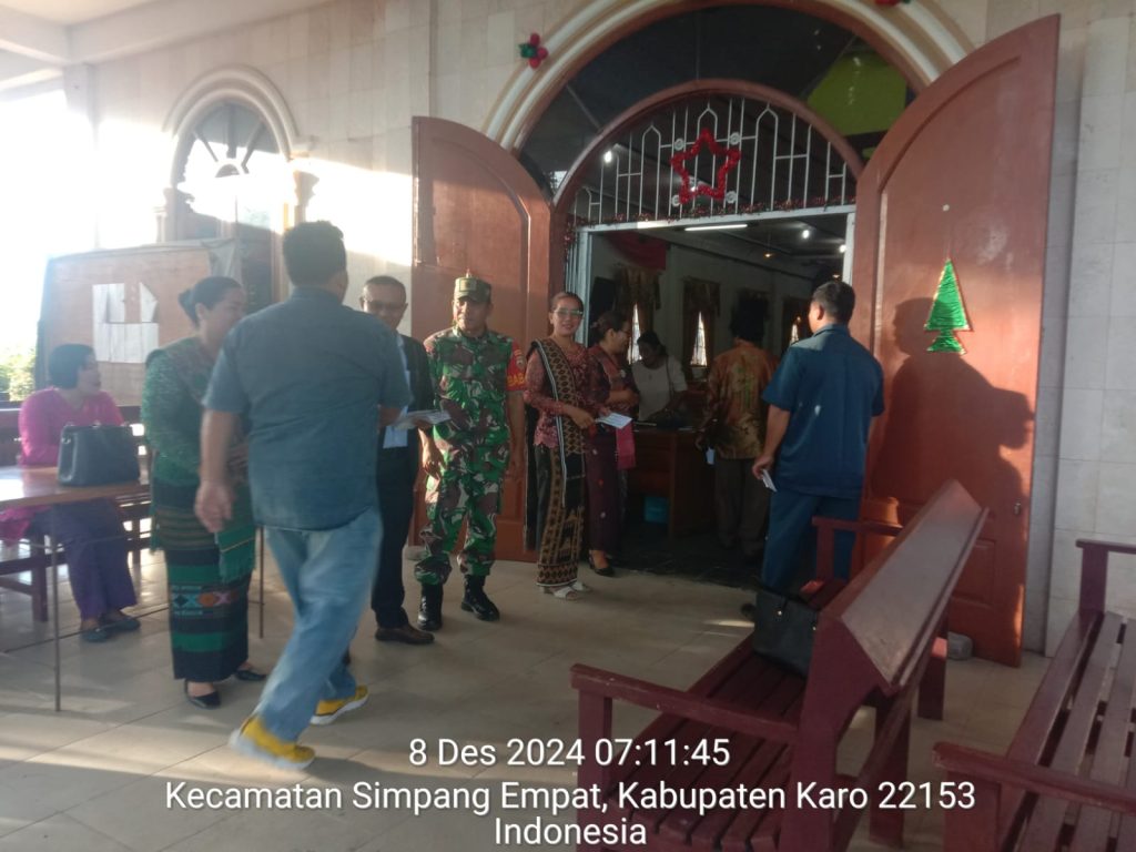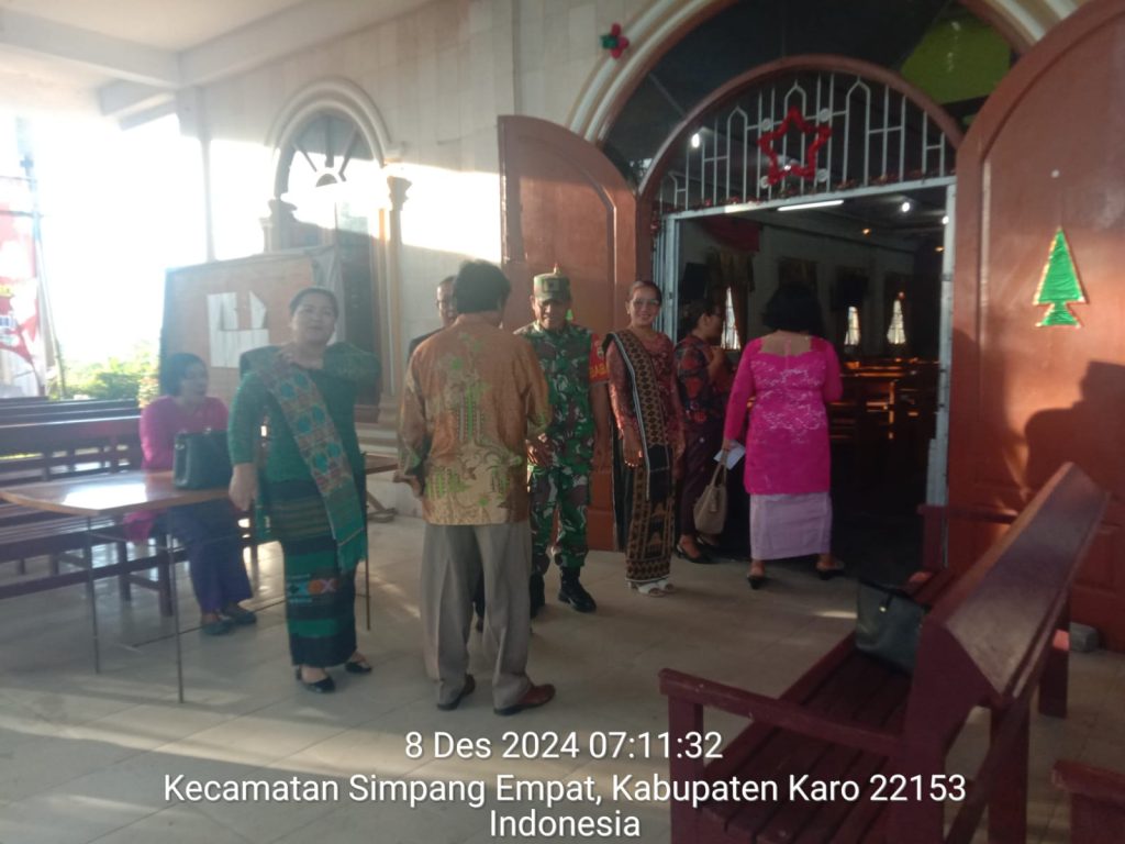 Serka Sudino Sihombing juga sebagai Babinsa Koramil 04/Simpang Empat pada hari minggu ini (08/12) melaksanakan Pawilbin dan Komsos besilaturahmi sambil menyampikan imbauan kepada warga agar menjaga kemanan dan ketertiban, menjaga kebersihan lingkungan serta membantu Majelis Gereja pada pelaksanaan Pengamanan Ibadah Kebaktian Minggu di GBKP (Gereja Batak Paro Protestan) Ndokum Siroga Jalan Berastagi-Tiganderket Desa Ndokum Siroga Kecamatan Simpang Empat Kabupaten Karo-Sumatera Utara.