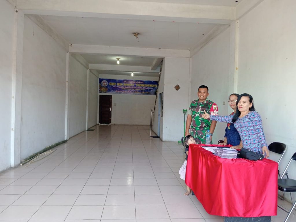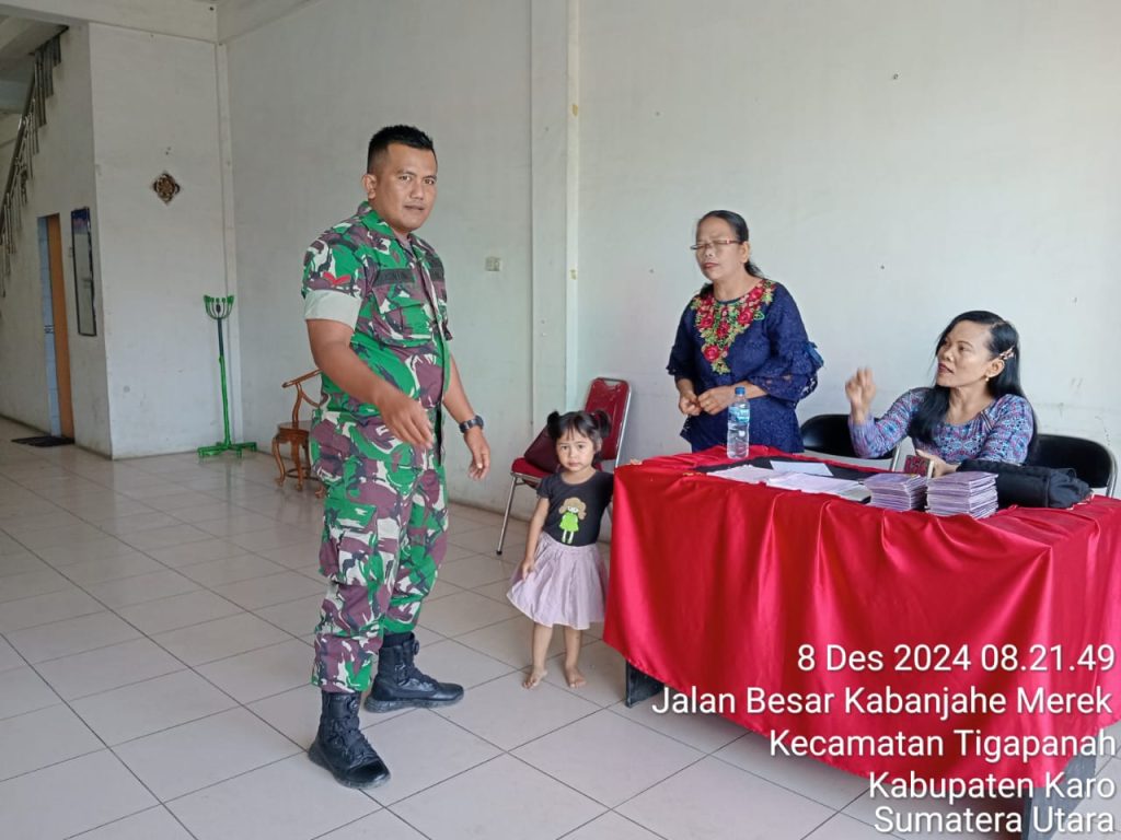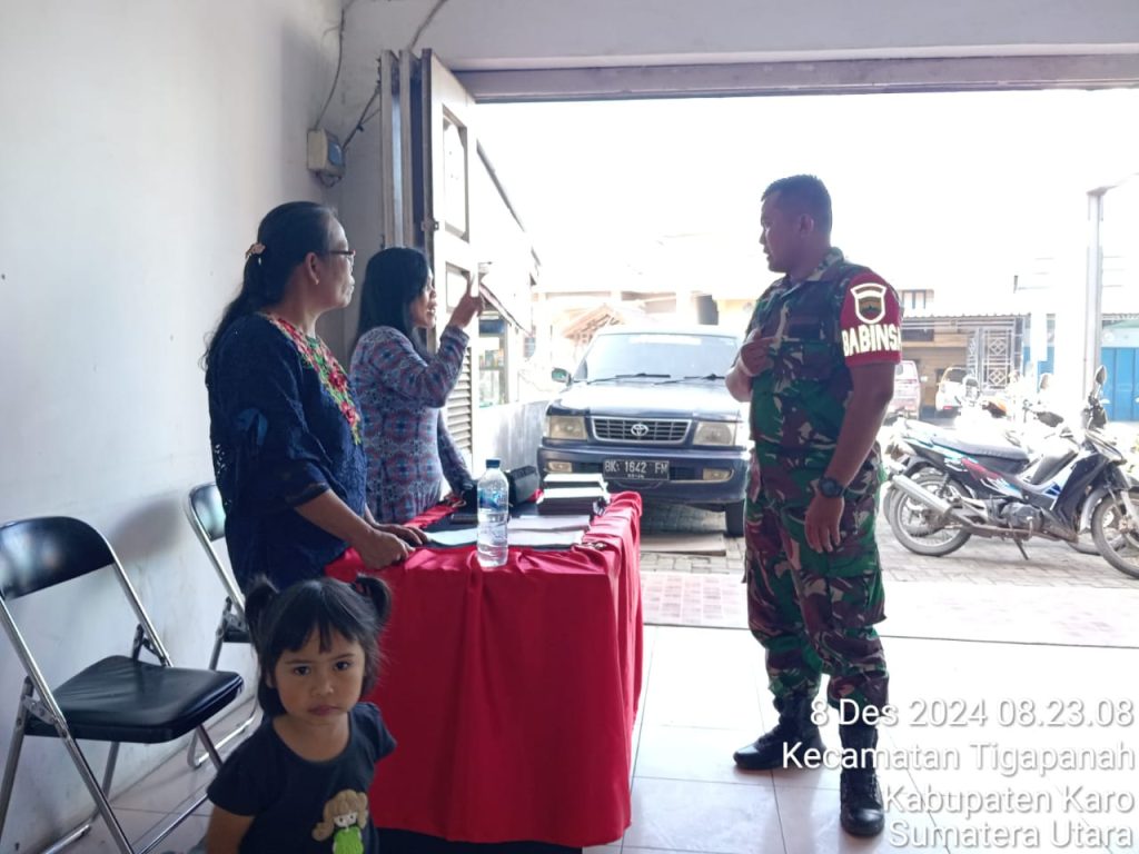 Kopda Habiron Ginting sebagai Babinsa (Bintara Pembina Desa) di Koramil 02/Tigapanah membantu Majelis Gereja dalam Pengamanan Ibadah Kebaktian Minggu di Gereja Bethel Indonesia Tigapanah belokasi di Jalan Merek-Kabanjahe Desa Tigapanah Kecamatan – Tongkoh Dusu Tigajumpa Desa Sukajulu Kabupaten Karo-Sumatera Utara, kegiatanpun dilaksanakan bersinergi dengan pihak Majelis Gereja bagian keamanan.