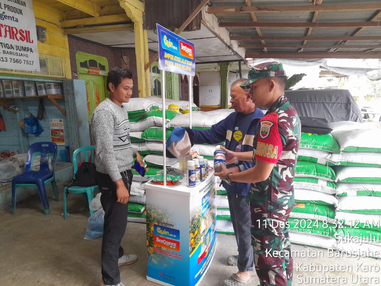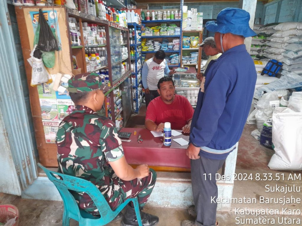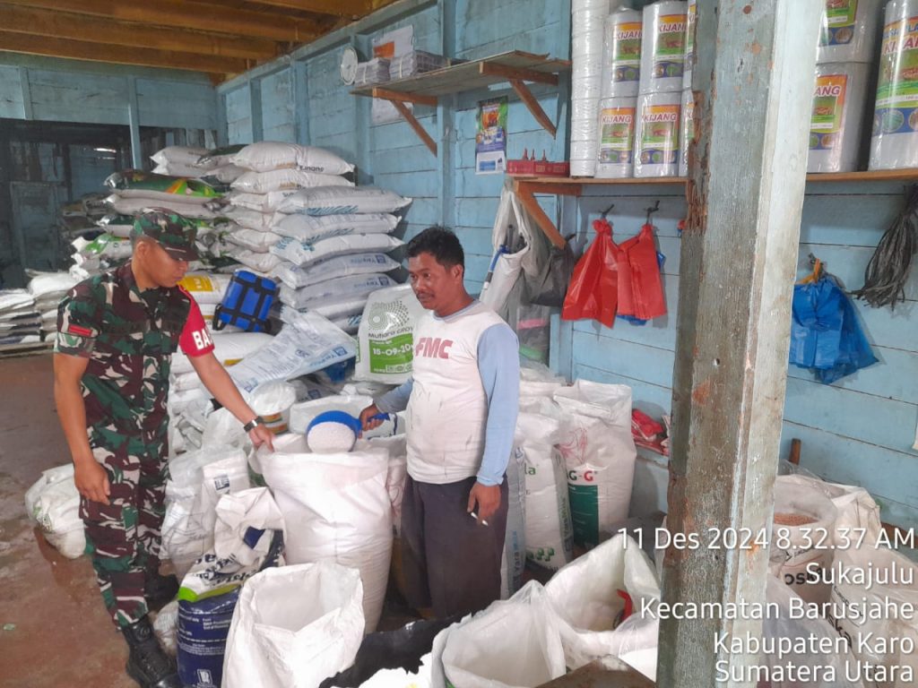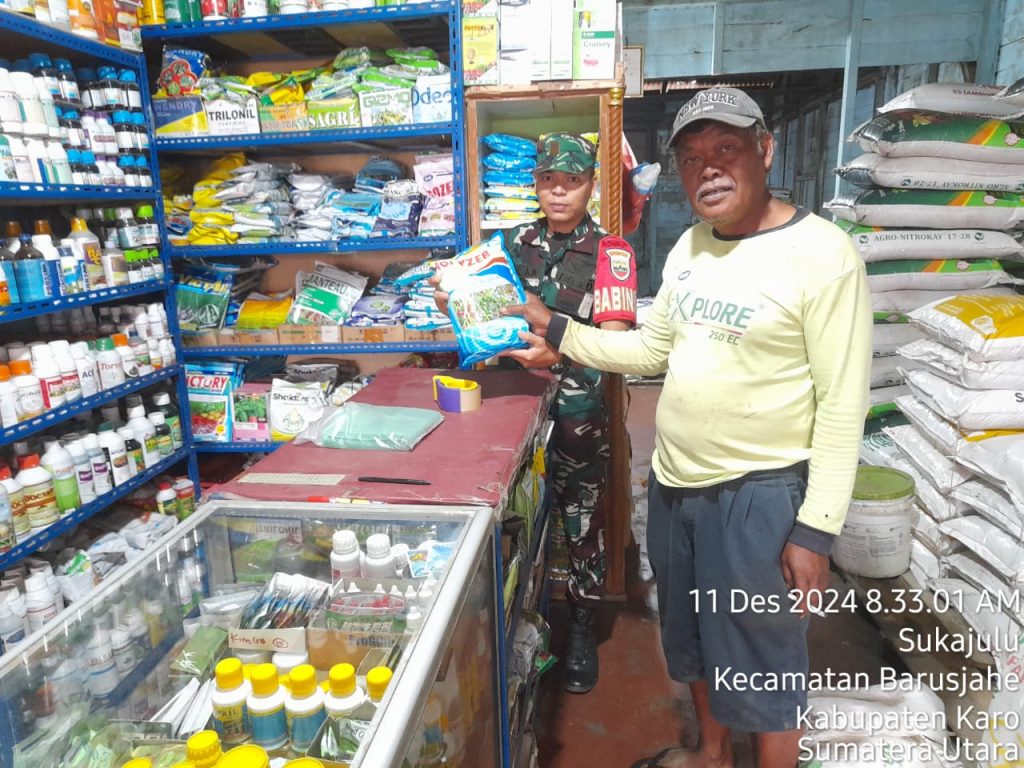 Ketersediaan stok pupuk bersubsidi maupun non subsidi dan obat-obatan pertanian juga bibit unggul tanaman di Toko Pertanian ini di minitoring bertujuan supaya Program Ketahanan Pangan Nasional di wilayah Koramil 01/Barusjahe sukses juga untuk membantu petani agar tidak sulit dalam mendapatkan kebutuhan barang-barang tersebut, kegiatan inipun dilakukan oleh seluruh anggota Koramil jajaran Kodim 0205/Tanah Karo khusunya para Babinsa di masing-masing desa atau wilayah binaan yang menjadi tanggung jawabnya masing-masing.