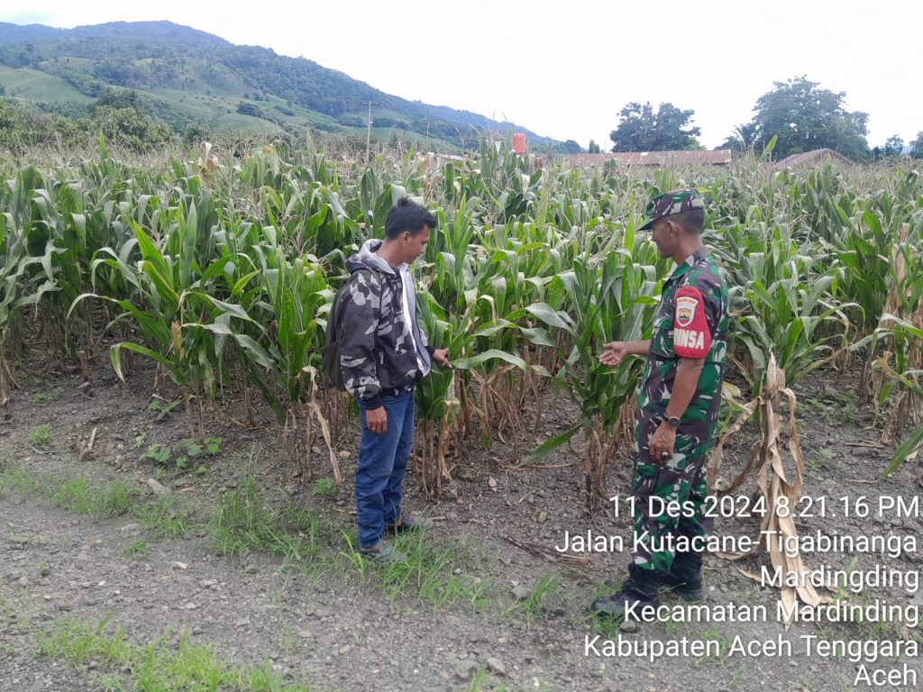Tanah Karo. Rabu 11/12/2024. Sertu Jumarin Anggota Koramil 04/Simpang Empat jajaran Kodim 0205/Tanah Karo bertugas sebagai Babinsa (Bintara Pembina Desa) diperintahkan Danramil Kapten Inf Gandhi N. Hartanto melaksanakan Komsos (Komunikasi sosial) bersilaturahmi secara humanis sambil Pendampingan Pertanaian dalam rangka Upsus Ketahanan Pangan Nasional (Ketapangnas) bersama PPL Pertanian Kec. Mardingding Dinstan Kab. Karo Bapak Ganda Ginting di desa binaannya yaitu Desa Mardingding Kecamatan Mardingding Kabupaten Karo-Sumatera Utara pada hari ini (11/12) pagi hingga siang.