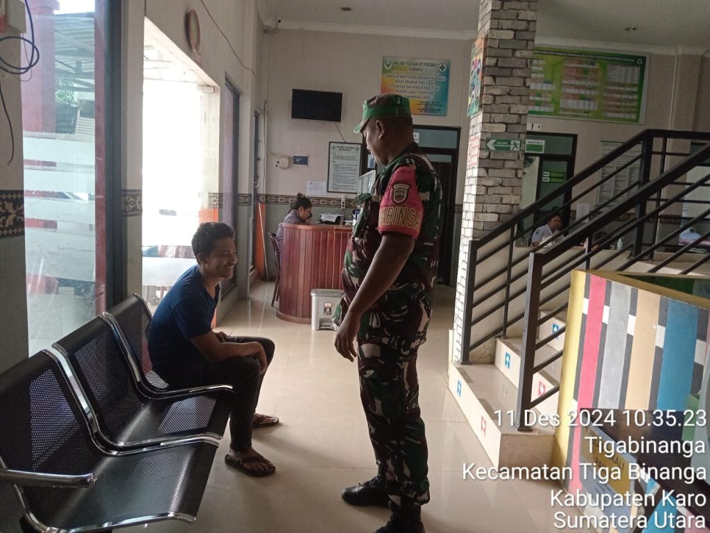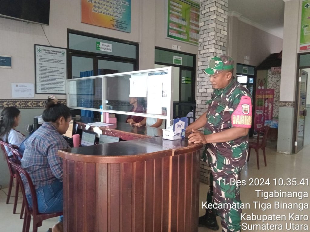 Tanah Karo. Rabu 11/12/2024. Kapten Inf JMH Tampubolon selaku Danramil 08/Tigabinanga jajaran Kodim 0205/Tanah Karo perintahkan kepada anggotanya terutama para Babinsanya agar tetap melaksanakan kegiatan Patroli Wilayah Binaan dan Komunikasi Sosial, caranya pun beragam salahsatunya bersilaturahmi dan mengatar warga desa binaan yang sakit serta mengecek kesehatan ke tempat layan kesehatan baik Puskesmas, Klinik umum maupun ke Rumah sakit sambil bersilaturahmi dengan Tenaga Kesesatan dan staf kesehatan.