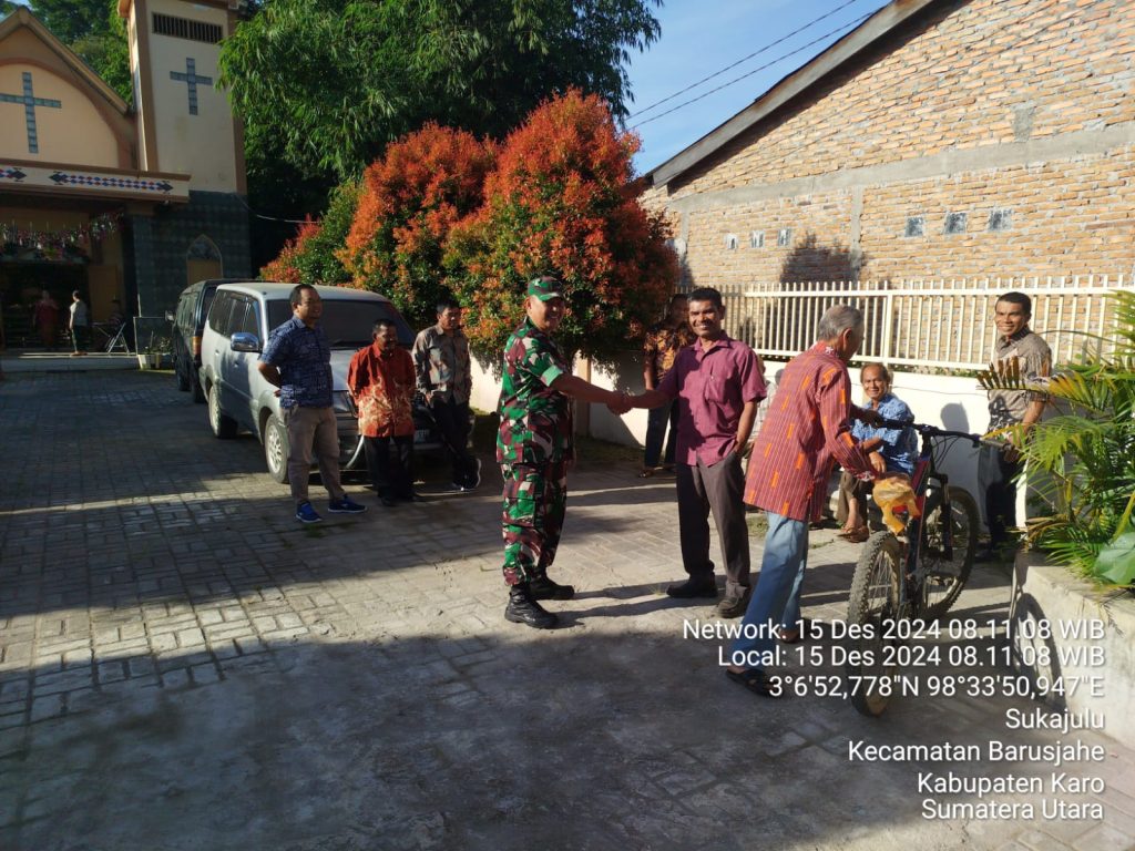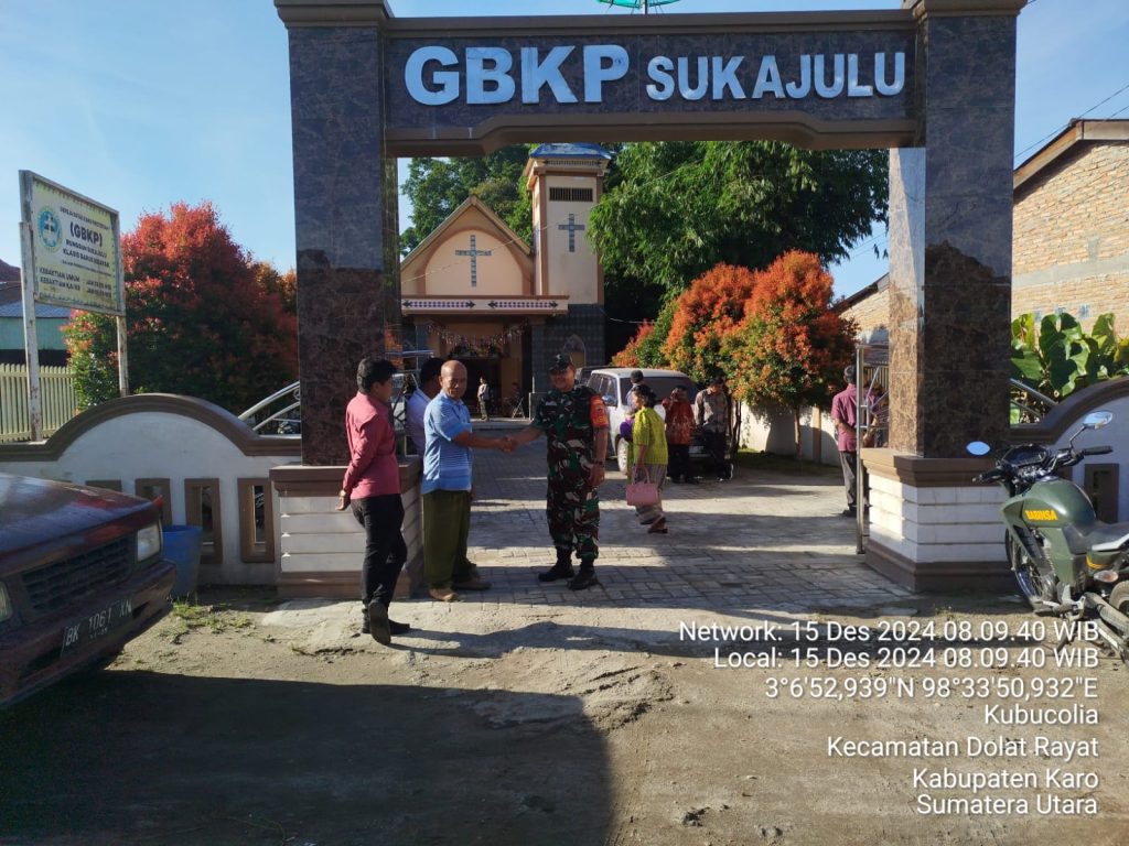 Pelda Zulkarbain S. Meliala yang bertugas sebagai Babinsa (Bintara Pembina Desa) di Koramil 01/Barusjahe jajaran Kodim 0205/Tanah Karo juga melaksankaan kegiatan tersebut yaitu membantu Majelis Gereja melaksanakan Pengamanan Ibadah Kebaktian Minggu di GBKP (Gereja Batak Karo Protestan) Sukajulu di Jalan Tigapanah-Tongkoh Desa Sukajulu Kecamatan Barusjahe Kabupaten Karo Sumatera Utara, kemudian pelaksanaan kegiatan sesuai perintah Danramil Kapten Inf Jonson E. SEmbiring (15/12).