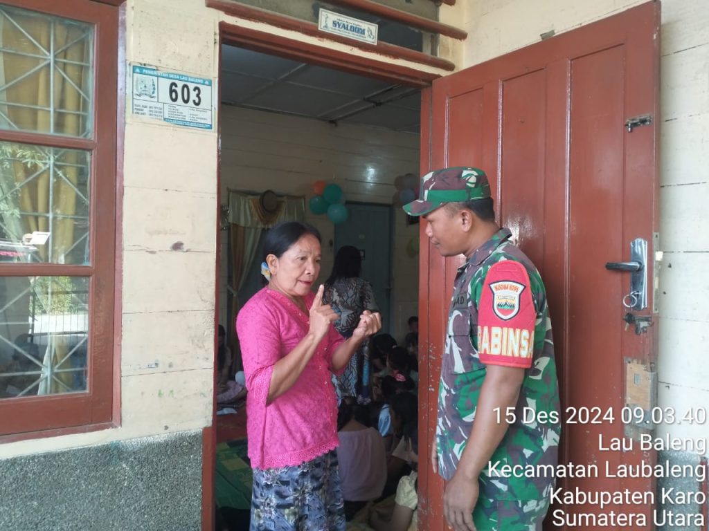 Babinsa Koramil 09/Laubaleng melaksanakan Pengamanan Ibadah Kebaktian Minggu di GBKP Laubaleng tersebut dilaksanakan sambil Komunikasi Sosial (Komsos) bersilaturahmi secara humanis dengan warga juga samial menyapikan imbauan supaya tetap menjaga keamanan dan ketertiban lingkungan juga menjaga kebersihan lingkungan muapaun tetap menjaga kerukunan hidup antar warga yang bertujuan untuk memberikan rasa aman dan nyaman terhadap warga desa binaan Umat Kristiani melaksanakan ibadah kebantian minggu, serta agar wilayah binaan aman dan kondusif serta bersih dan sehat juga bebas wabah penyakit.