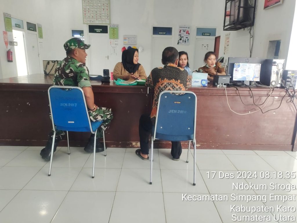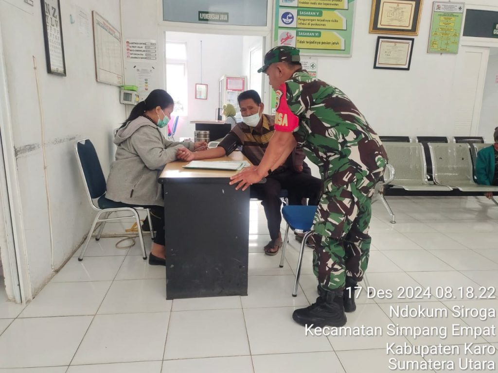 Kopda Ganda Syahputra melaksanakan kegiatan berlokasi di Puskesmas Simpang Empat Jalan Kiras Bangun Desa Ndokum Siroga Kecamatan Simpang Empat tujuannya untuk menadampingi warga wilayah binaan yang sakit untuk dilakukan pengecekan serta mendapat pelayanan kesehatan berupa perawatan/pengobatan serta untuk mendapatkan obat, kegiatan ini sebagai bentuk kedekatan Prajurit TNI dengan Rakyat maupaun TNI dengan Para Medis.