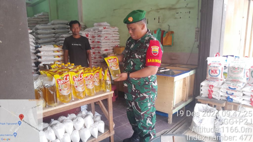Serda Zulkarnaen Matondang sebagai Babinsa di Koramil 02/Tigapanah pada hari ini (19/12) melaksanakan pencengecekan untuk monitoring harga dan ketersediaan stok bahan pangan terutama Sembako (Sembilan bahan pokok) kebutuhan masyarakat di wilayah binaan yaitu di Pasar Sore Tigapanah termasuk di Toko Bahan Pangan milik Bapak Jekson Purba Desa Tigapanah Kecamatan Tigapanah Kabupaten Karo-Sumut, sasaran pengecekan adalah ketersediaan bahan pangan beras, telur, minyak goreng, tepung terigu, gula pasir, susu, garam, ikan kaleng, LPG 3 Kg, termasuk mie instan dan air mineral kemasan.