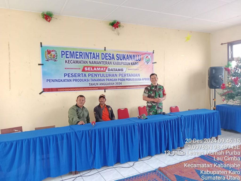 Menurut Sertu Jepe Butarbutar mengatakan bahwa “Kegiatan ini adalah guna menyukseskan Program Ketahanan Pangan Nasional sehingga bisa Swasembada Pangan baik di Kabupaten Karo hingga tingkat Nasional oleh sebab itu Pemkab Karo melalui sjajarannya yaitu Pemkec dan Pemdes termasuk Pemdes Sukanalu menggelar Sosialisasi Peningkatan Produksi Tanaman Pangan untuk masyarakat desa juga dalam rangka realisasi penggunan angaran dari Dana Desa Tahun Anggaran 2024”, katanya Butarbutar.