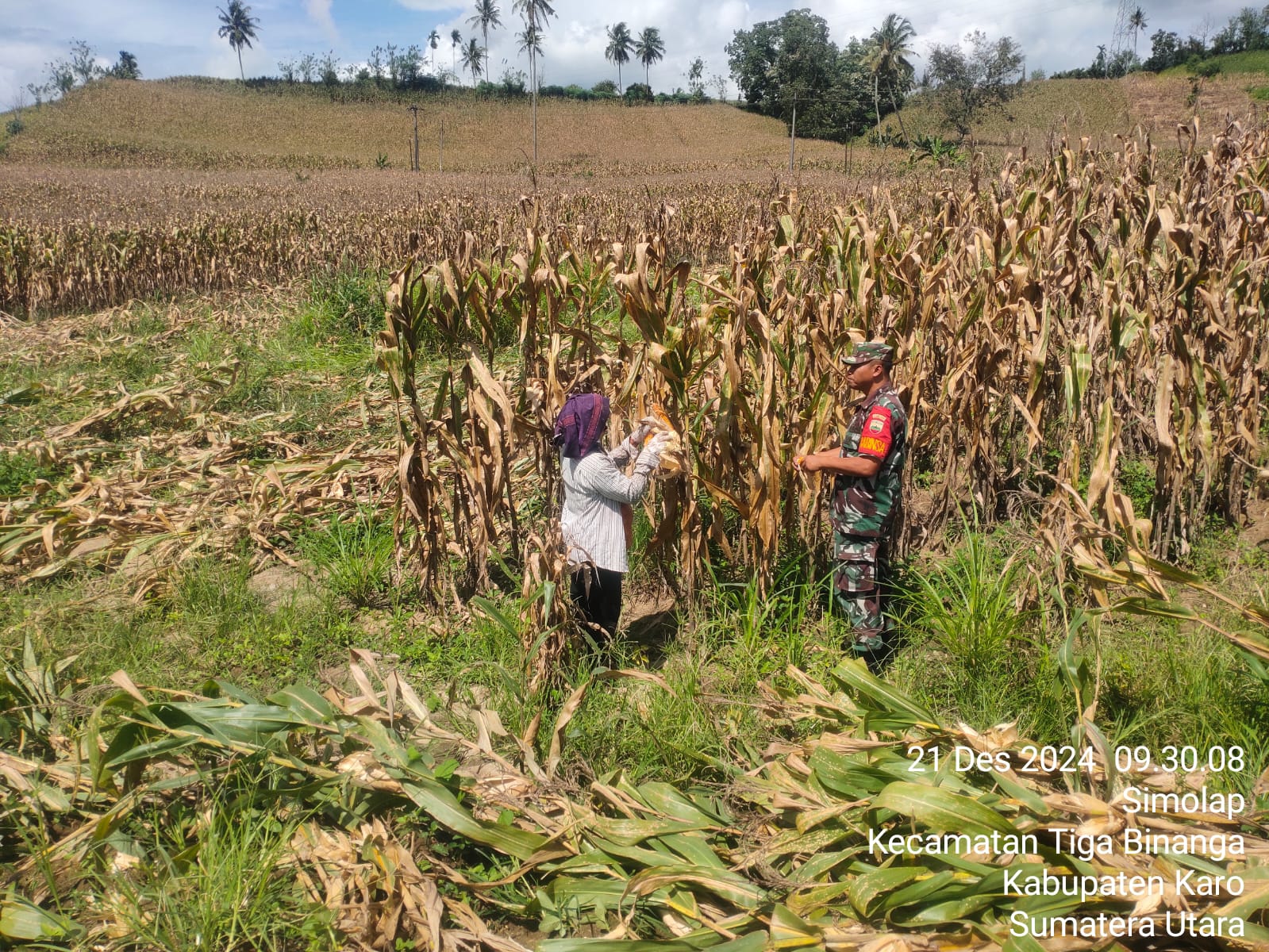Pihak Kodim 0205/Tanah Karo berserta Koramil jajarannnya bersinergi dengan Dinas Pertanian melaksanakan kegiatan Program Upaya Khusus Ketahanan Pangan Nasional di Kabupaten Karo, seperti yang dilakukan oleh Sertu Heru Suranto yang bertugas sebagai Babinsa di Koramil 08/Tigabinanga sesuai perintah Danramil Kapten Inf JMH Tampubolon melaksanakan pendampingan pertanian dalam rangka Upsus Ketapangnas membantu masyarakat panen jagung.