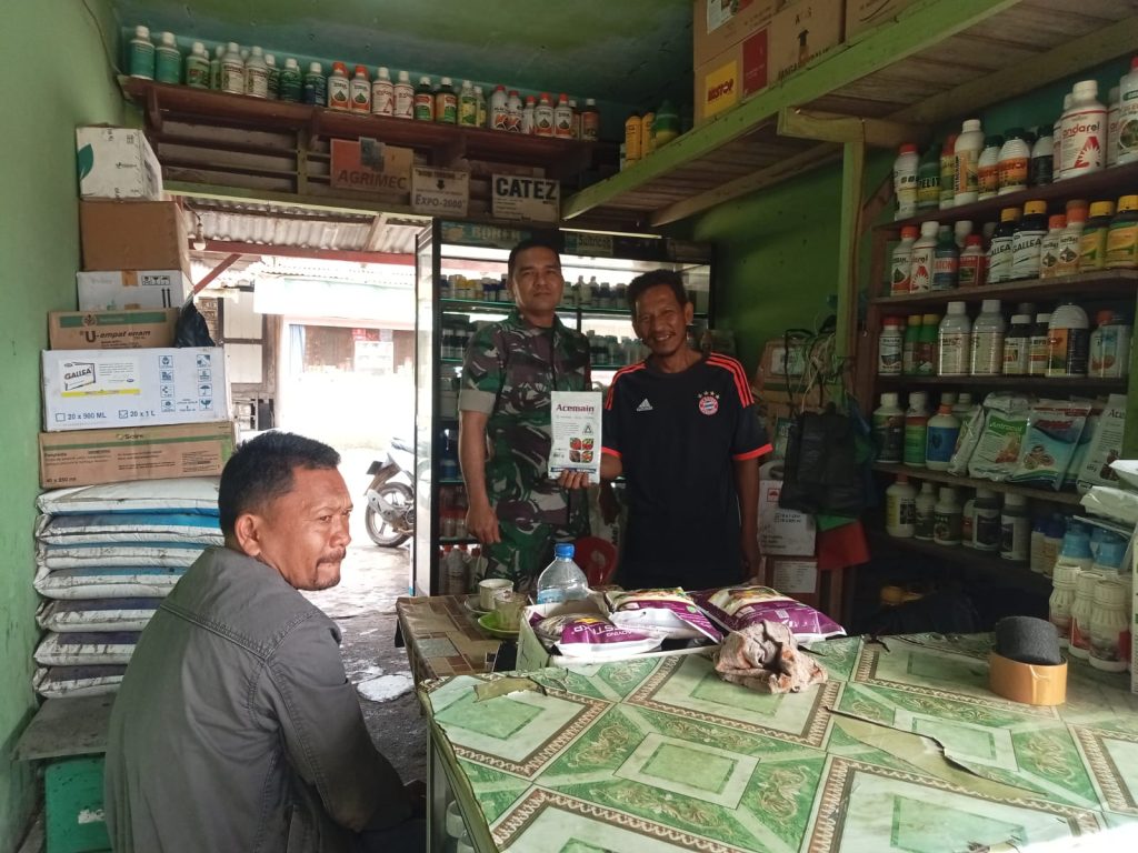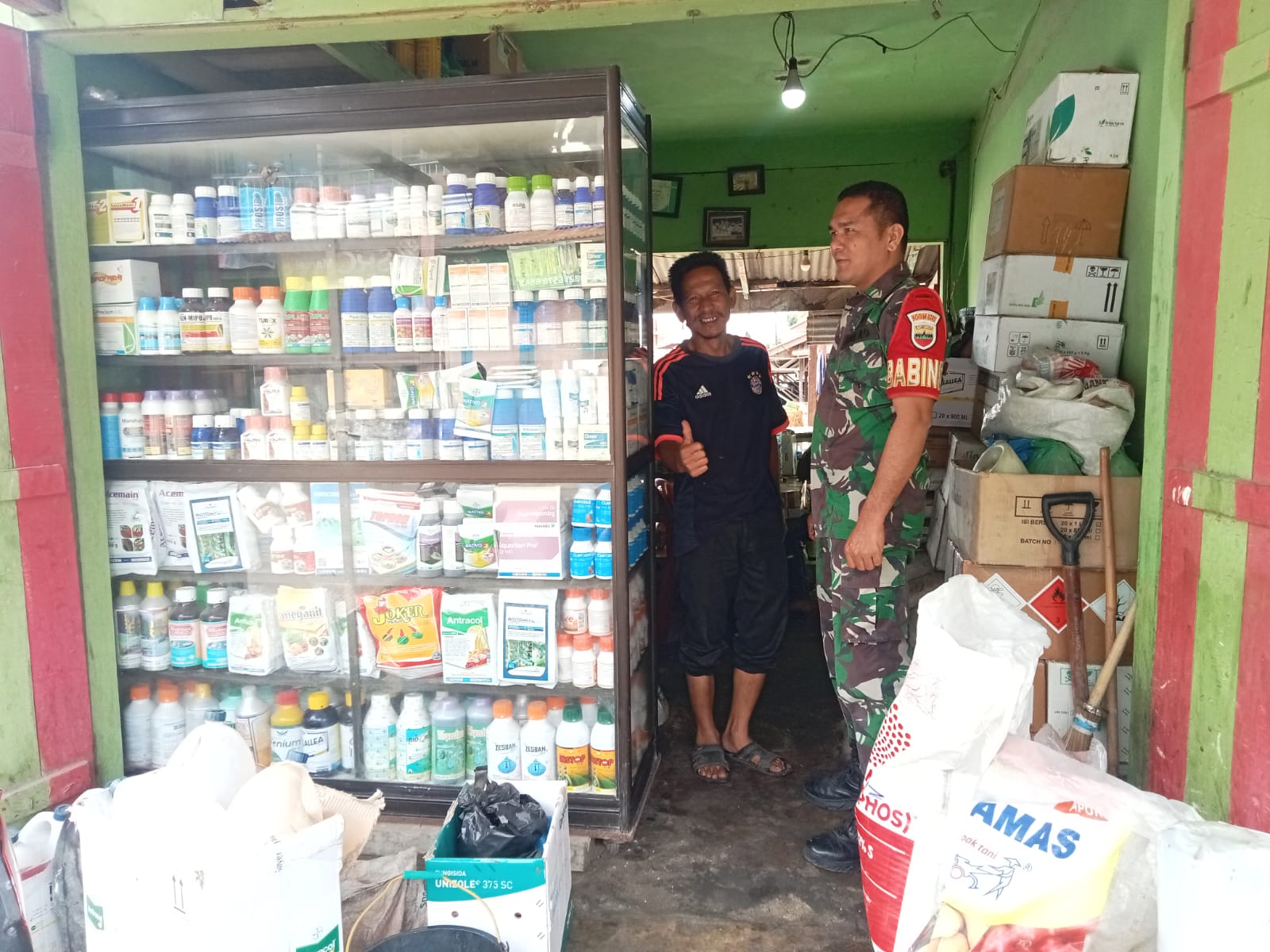 Dalam melaksanakan Komsos (Komunikasi social) Sertu Esron Kurnia Ginting bersilaturahmi humanis dengan pemilik Toko Pertanian Bapak P. Sinuhaji, dalam monitoring ini dilakukan secera terjadwal untuk mengetahui ketersediaan stok pupuk bersubsidi maupun obat-obatan pertanian untuk memenuhi kebutuhan para petani warga binaan sehingga dalam perawatn tanaman lancar supaya nantinya panen berhasil dan mensukseskan Program Ketahanan Pangan Nasional serta membantu kesulitan petani dalam mendapatkan kebutuhan pupuk dan obat-obatan tanaman, juga kegiatan ini dilakukan oleh para Babinsa jajaran Kodim 0205/Tanah Karo di desa binaan masing-masing.