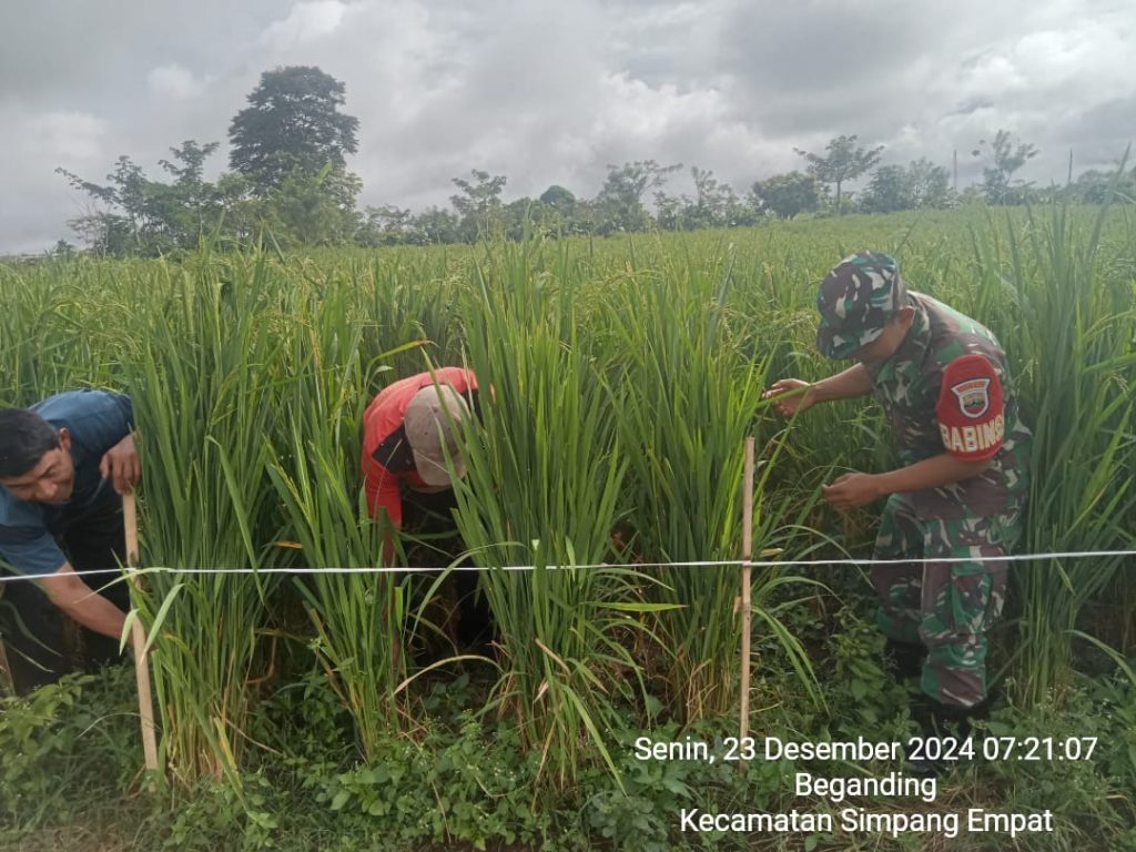 Babinsa Koramil 04/Simpang Empat Dampingi dan Bantu Warga Merawat Tanaman Padi