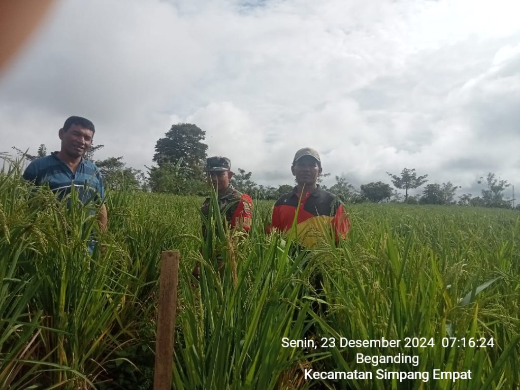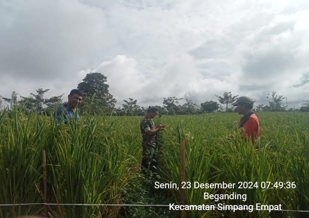 Tanah Karo. Senin 23/12/2024. Kegiatan Pendampingan Upsus Ketahanan Pangan Nasional (Ketapangnas) sambil Komunikasi Sosial (Komsos) bersilaturahmi secara Humanis di Dusun-II Desa Beganding Kecamatan Simpang Empat Kabupaten Karo-Sumatera Utara dilaksanakan oleh Sertu Jemmy Lambaran yang bertugas sebagai Babinsa (Bintara Pembina Desa) di Koramil 04/Simpang Empat jajaran Kodim 0205/Tanah Karo yang dilakukan pagi hingga siang (23/12).