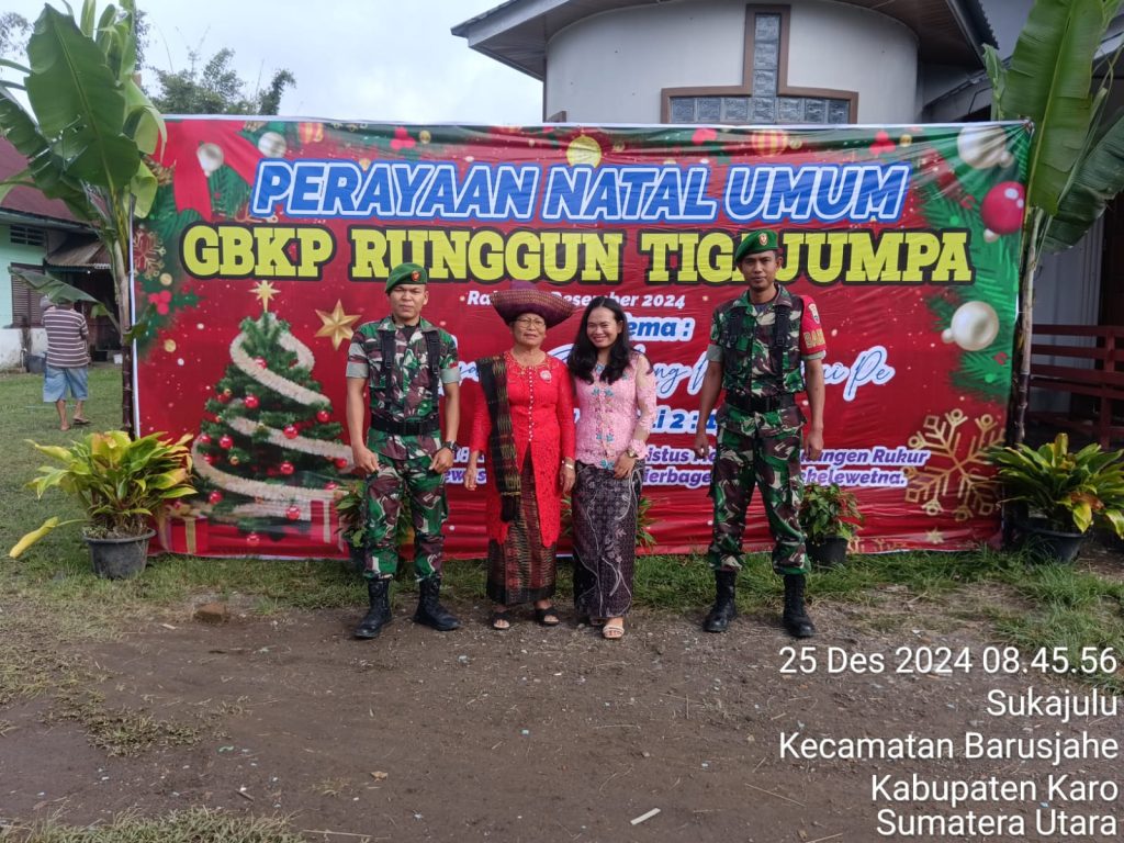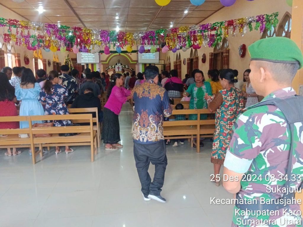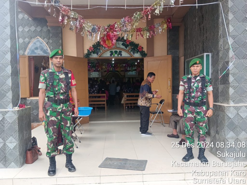Seperti yang dilaksanakan oleh Koptu Junaidi sebagai Babinsa dan Pratu Iqbal Aulia sebagai anggota Koramil 01/Barusjahe Bersama majelis Gereja Seksi Kemanan juga Muda-mudi Gereja melaksananakan Pengamanan Ibadah Perayana Natal di GBKP (Gereja Batak karo Protestan) Desa Sukajulu Kecamatan Barusjahe dalam pelaksanaan kegiatan tersebut juga sambil Komsos (Komunikasi Sosial).