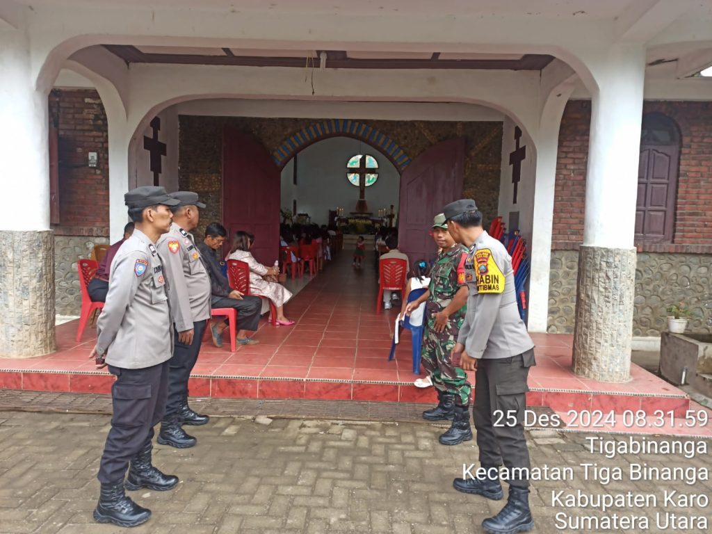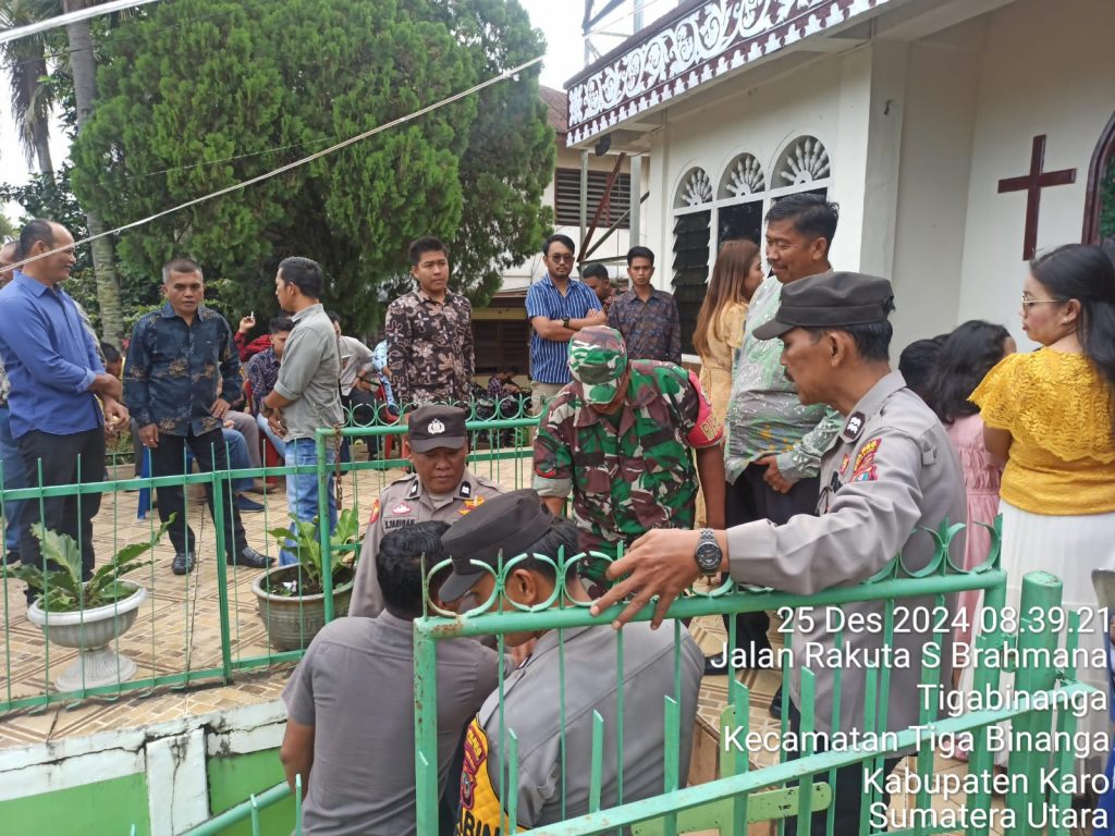 Hari Rabu ini yang juga bertepatan Hari “H” Perayaan Natal 25 Desember 2024, sehingga Danramil 08/Tigabinanga perintahkan Bati Tuudnya Serka J.H. Situmorang memimpin para Babinsanya yaitu Serka Iskandar Nasution, Serda M. Rizky Nasution dan Kopda Erdiansyah Tarigan melaksanakan patroli dan pengamanan perayaan natal sambil Komsos serta imbuaan di gereja kegiatan bersinergi dengan Personel Polsek Tigabinanga, kegiatpun dilaksanakan di gereja yang ada di Kecamatan Tigabinanga Kabupaten Karo-Sumatera Utara yaitu di Gereja Katolik Santo Asisi Tigabinanga, Gereja GBKP Pergendangen dan Gereja GBKP Tigabinanga.