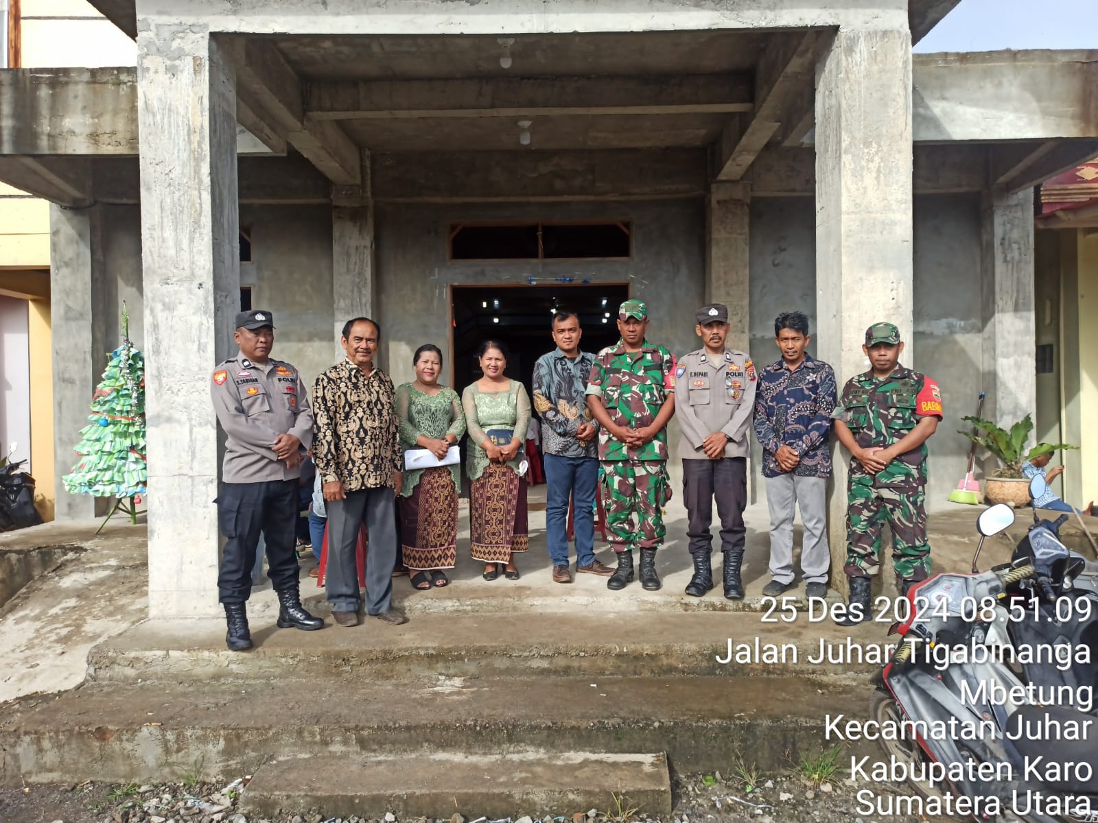 Tanah Karo. Rabu 25/12/2024. Suasana Natal Tahun 2024 ini sangat terasa semarak sehingga para personel TNI-Polri Dan Pemerintah Daerah melaksanakan Patroli maupun Pengamanan Perayaan Natal, termasuk di Kecamatan Tigabinanga Kabupaten Karo wilayah binaan Koramil 08/Tigabinangan jajaran Kodim 0205/Tanah Karo kegiatan tersebut juga dilakasanakan oleh para Babinsanya bersenergi dengan Personel Polsek Tigabinanga jajar Polres Tanah Karo.