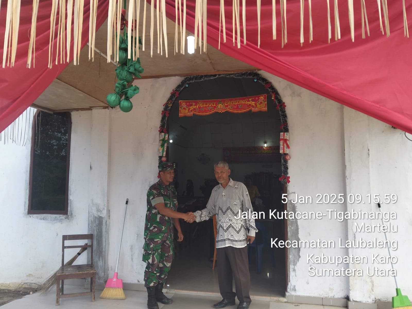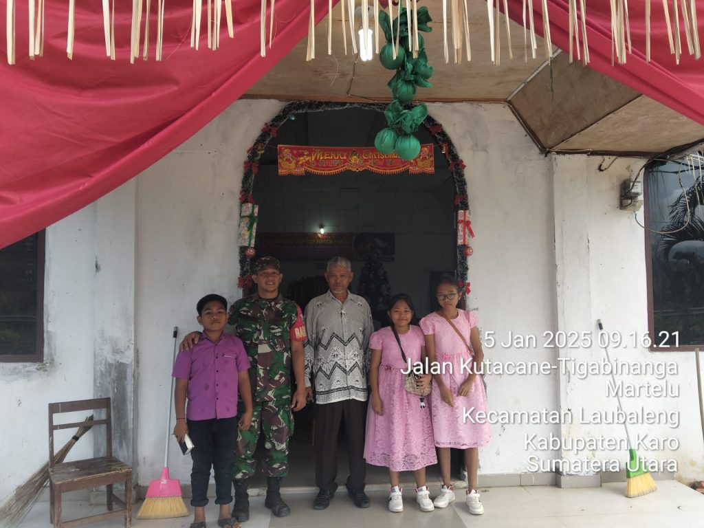 Tanah Karo. Minggu 05/02/2025.  Ranghkit Panjaitan bertugas sebagai Babinsa di Koramil 09/Laubaleng jajaran Kodim 0205/Tanah Karo melaksanakan kegiatan Komunikasi Sosial (Komsos) bersilaturahmi secara humanis sambil imbauan kepada warga/jemaat sambil membantu Majelis Gereja di GBKP (Gereja Batak Karo Protestan) Runggung Melias Desa Martelu Kecamatan Laubaleng Kabupaten Karo-Sumatera Utara.