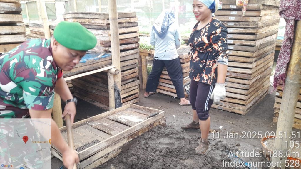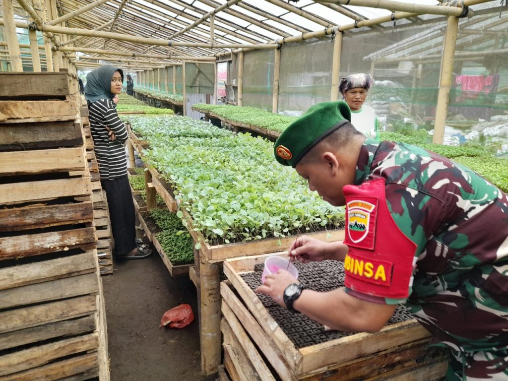 Tanah Karo. Sabtu 11/01/2025. Serda ZulkarnaEN matondang Babinsa (Bintara Pembina Desa) di Koramil 02/Tigapanah jajaran Kodim 0205/Tanah Karo, melaksanakan kegiatan Pendampingan Pertanian dan Komunikasi Sosial dengan Bapak B. Silalahi pemilik Green House pembibitan tanaman sayur di Sukanalu Desa Tigapanah Kecamatan Tigapanah Kabupaten Karo Sumatera Utara, pada hari (11/01).