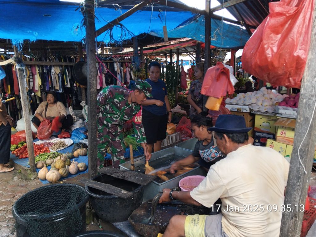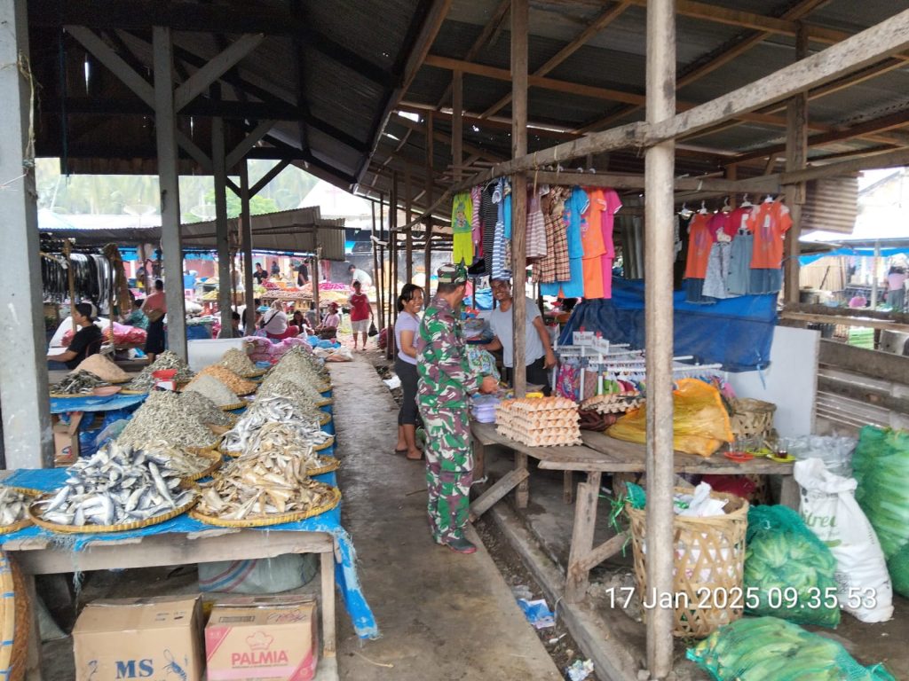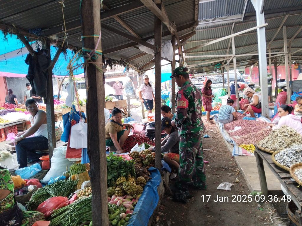 Babinsa Koramil 09/Laubaleng Di Pasar Laubaleng Patroli Wilayah Binaan Sambil Komsos