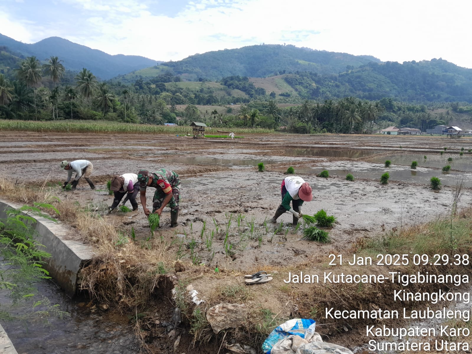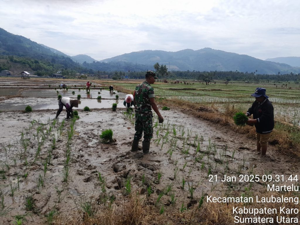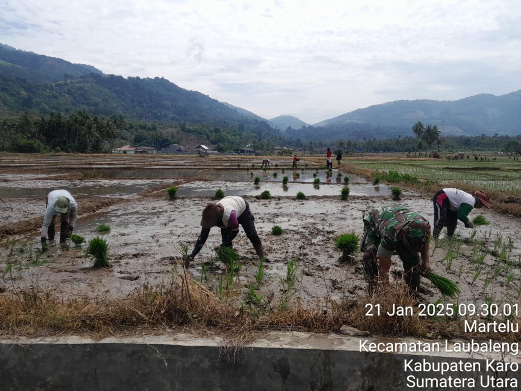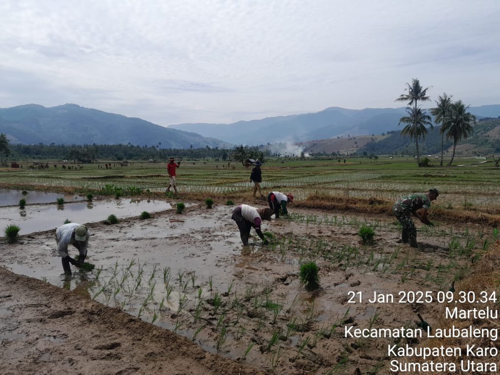Di wilayah binaan Koramil 09/Laubaleng jajaran Kodim 0205/Tanah Karo kegiatan tersebut juga dilaksanakan, seperti yang dilakukan oleh Kopda Wais Qarni Ramud yang bertugas sebagai Babinsa pada hari ini (21/01) dari pagi hingga siang melakukan Komsos (Komunikasi sosial) dan Pendampingan Pertanian membantu petani warga wilayah binaan Ibu Sinta Beru tarugan bersama pekerja harian lepas menanam bibit padi jenis Ciherang di lahan petanian seluas 0,5 hektar di Desa Martelu  Kecamatan Laubaleng Kabupaten Karo-Sumatera Utara.