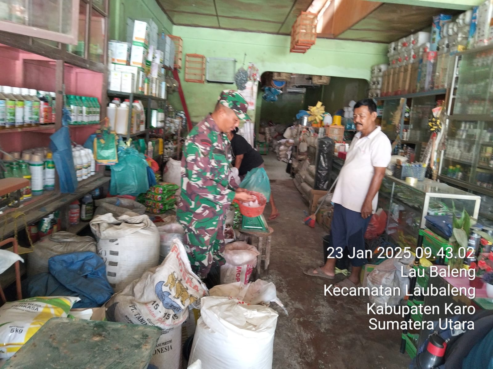 Seperti yang dilaksanakan oleh Serda Rangkit Panjaitan sebagai Babinsa Koramil 09/Laubaleng pada hari ini (23/01)   sesuai perintah dari Danramil juga melaksanakan kegiatan Komsos sambil melakukan pengecekan harga dan stok pupuk maupun ketersediaan bibit unggul serta obat-obatan pertanian, bertepat di Toko Pupuk UD. JAYA TANI milik di  Jalan Rakoetta Sembiring Brhamana Desa Laubaleng Kecamatan Laubaleng Kabupaten Karo-Sumatera Utara,  kegiatan inpun merupakan upaya pendampingan khusus perintah dari komando atas untuk mendukung program dari pemerintah.