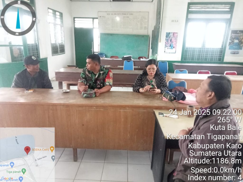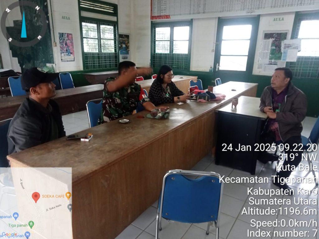 Tanah Karo. Jumat 24/01/2025. Dalam rangka Komunikasi sosial (Komsos) dan meningkatkan sinergitas dan jalinan silaturahmi dengan PPL Dinas Pertanian Kecamatan Tigabinanga, maka Babinsa Koramil 02/Tigapanah jajaran Kodim 0205/Tanah Karo Sertu Darmanta Perangin-angin sesuai perintah dan arahan dari Danramil Kapten Inf Judika Naibaho melaksanakan Komsos juga koordinasi dengan di Kantor PPL Dinas Pertanian Jalan Merek-Kabanjahe Desa Kutabale Kecamatan Tigapanah Kabupaten Karo-Sumatera Utara (24/01).