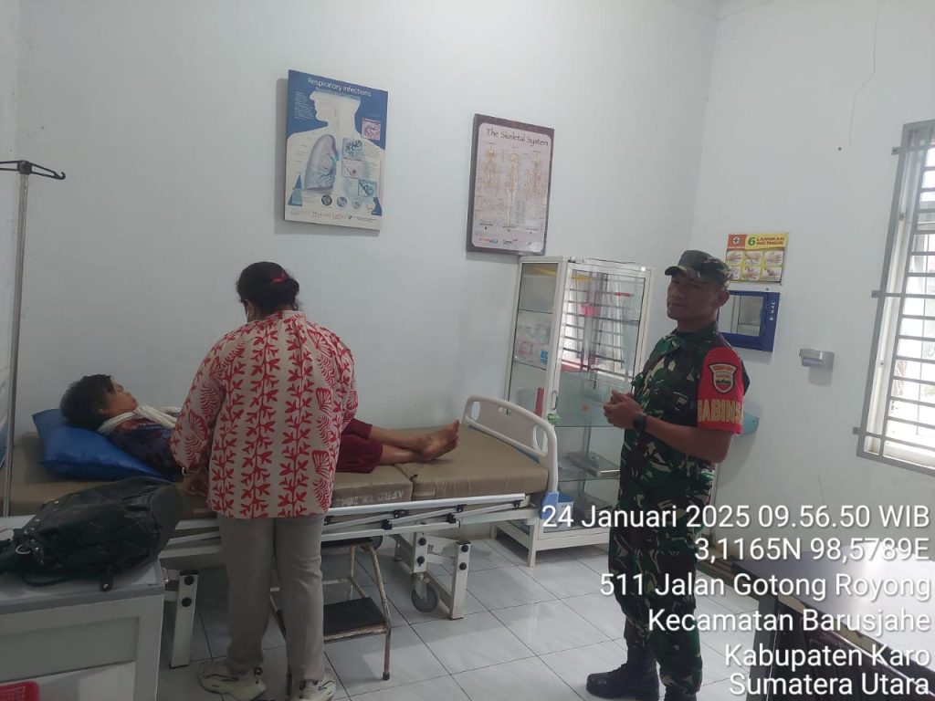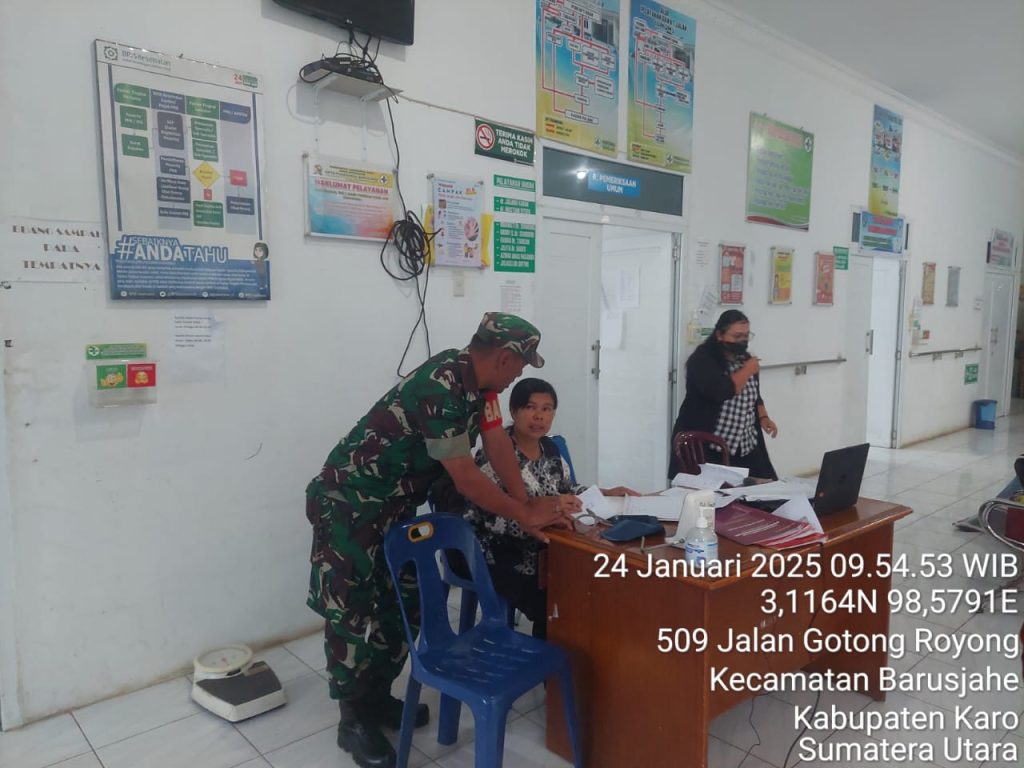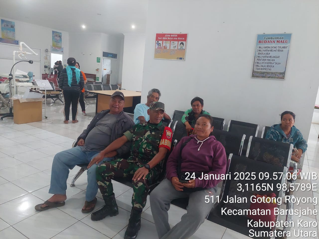 Tanah Karo. Jumat 24/01/2025. Danramil 01/Barusjahe jajaran Kodim 0205/Tanah Karo Kapten Inf Jonson E. DSembiring intruksikan para Babinsanya agar tetap melaksanakan kegiatan Komunikasi Sosial secara humanis, caranya pun beragam salahsatunya bersilaturahmi dan mengatar warga desa binaan yang sakit serta mengecek kesehatan ke tempat layan kesehatan baik Puskesmas, Klinik umum maupun ke Rumah sakit.
