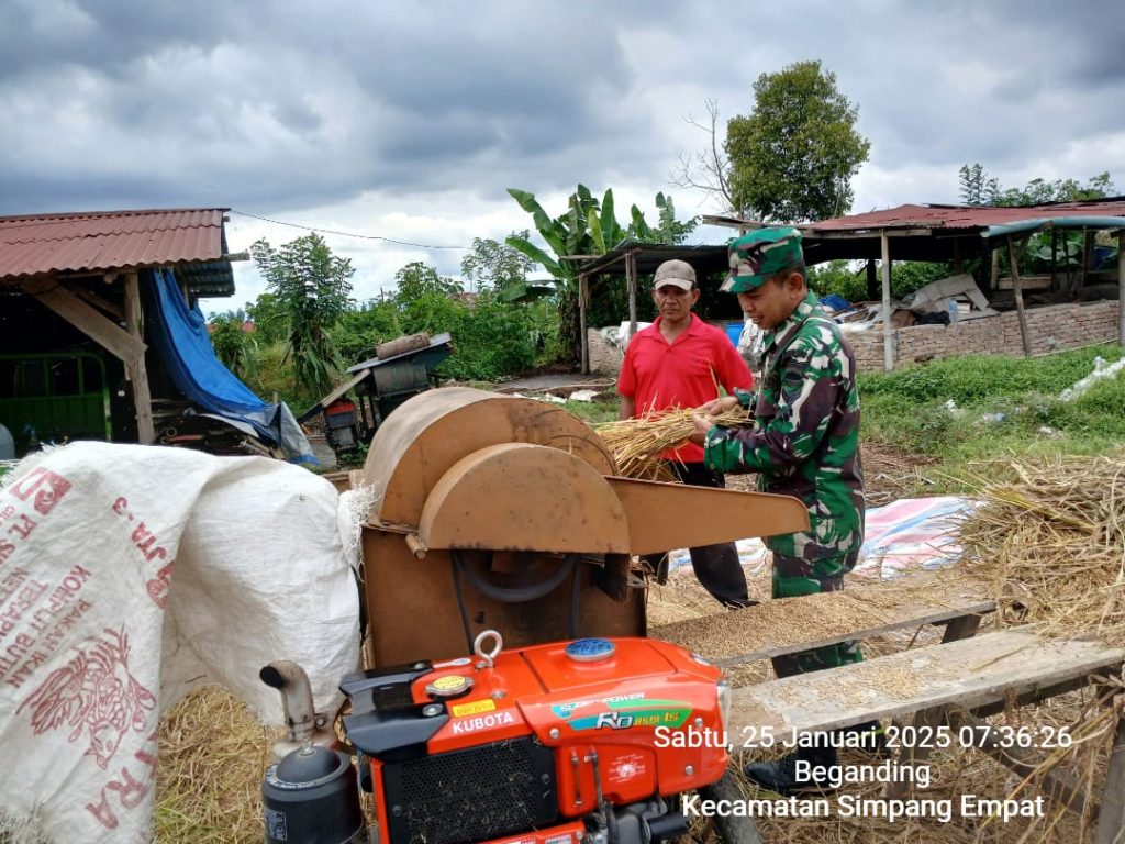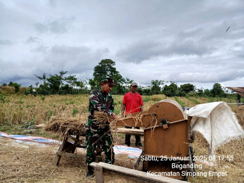 Sertu Jemmy Rombe Lambaran mengatakan bahwa “Kegiatan Upaya Khusus Ketahanan Pangan Nasional pendampingan menggolah hasil panen yaitu merontokan padi gogo milik Bapak Yanto Sembiring masyarakat warga wilayah binaan Desa Laubaleng merupakan kegiatan rutin dalam membantu para petani agar mudah menyimpan maupun memasarkannya agar qualitasnya bagus sehingga harga jual tingga juga mendukung Pemerintah Kabupaten Karo dalam menyukseskan Swasembada Pangan Nasional. (Bayu.W GATUBIMA_PENDIM 0205/TK)