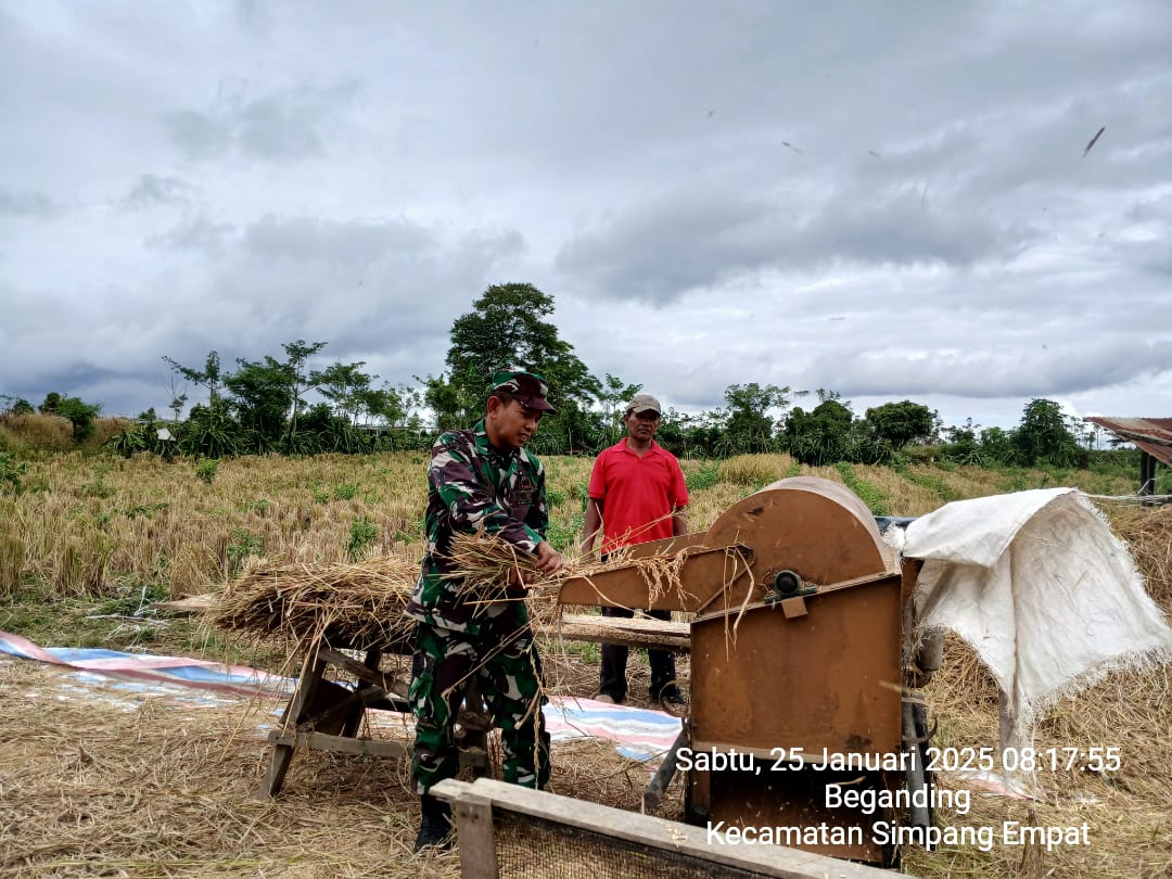 Berbagai usaha dan upaya menyukseskan Program Ketahanan Pangan Nasional yang sedang digiatkan dengan berbagai cara oleh pemerintah dari tingkat pusat hingga ke daerah juga mendukung menuju swasembada pangan nasional, sehingga Kapten Czi Menson Tarigan selaku Danramil 04/Simpang Empat perintahkan para Babinsanya melaksanakan kegiatan Upsus Ketapangnas yaitu membantu dan mendampingi warga menggolah hasil panen jagung.