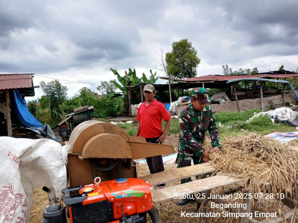Hari ini (25/01) Sertu Jemmy Rombe Lambaran melaksanakannya kegiatan tersebut di wilayah binaan yaitu di Desa Beganding Kecamatan Simpang Empat Kabupaten Karo-Sumatera Utara yaitu membantu warga petani Bapak Yanto Pelawi merontokan padi gogo, selanjutnya selain itu Babinsa juga melaksanakan Upsus Ketapangnas pengecekan harga dan stok pupuk maupun obat-obatan pertanian stermasuk bibit unggul tanaman.