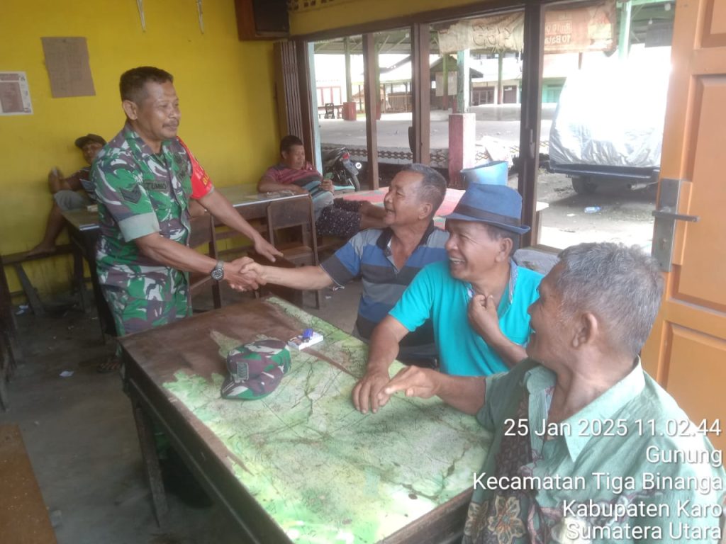 Tanah Karo. Sabtu 25/01/2025. Untuk menjaga jalinan silaturahmi dengan warga terus dilaksanakan Para Babinsa TNI AD dalam rangka kegiatan Komunikasi Sosial (Kosmos) selain untuk mempererat hubungan TNI bersama Rakyat juga untuk mengumpulkan informasi perkembangan situasi Geo Demo Konsos di wilayah binaan, apalagi saat ini di awal Tahun 2025.