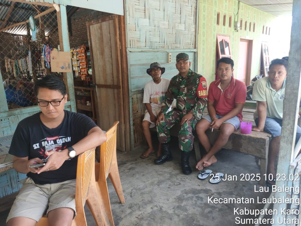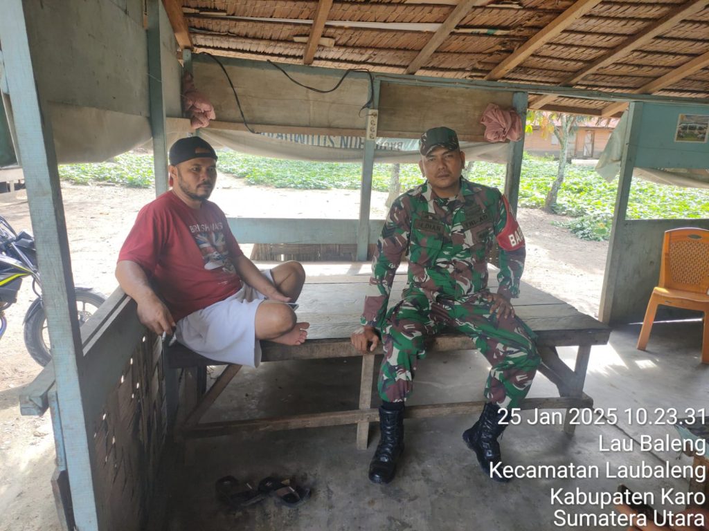 Tanah Karo. Sabtu 25/01/2025. Serka M. Dian bertugas sebagai Babinsa di Koramil 09/Laubaleng jajaran Kodim 0205/Tanah Karo melaksanakan kegiatan Pawilbin (Patroli Wilayah Binaan), kemudain maanfaatkan kedai kopi dijadikan tempat bersilaturahnmi dengan masyarakat warga binaan dalam rangka Komunikasi Sosial (Komsos) berlokasi di Kedai Kopi Bapak Sembiring Desa Laubalkeng Kecamatan Laubaleng Kabupaten Karo-Sumut, kegiatan ini sesuai perintah dan arahan dari Kapten Inf Gandhi N. Hartanto selaku Danramil (25/01).