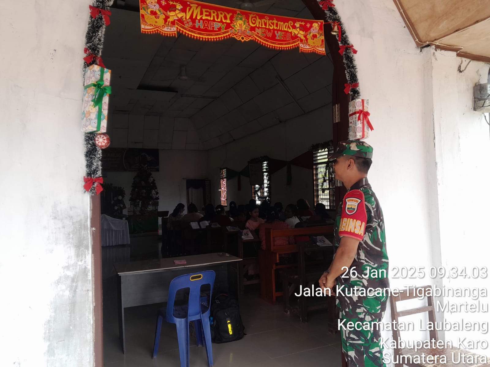 Babinsa Koramil 09/Laubaleng Kopda Wais Qarni Ramud bersinergi dengan Majelis GBKP Laubaleng menyampaikan imbauan kepada jemaat agar tetap agar tetap menjaga kerukunan hidup antar warga serta toleransi antar umat agama, menjaga keamanan, ketertiban dan kebersihan lingkungan serta apabila terjadi bencana atau kejadian darurat segera lapor kepada pihak berwajib, jangan meninggalkan rumah kosong dalam keadaan api hidup juga tidak terkunci, kemudian rutin mengecek instalasi listrik termasuk berhati-hati saat berkendaraan.