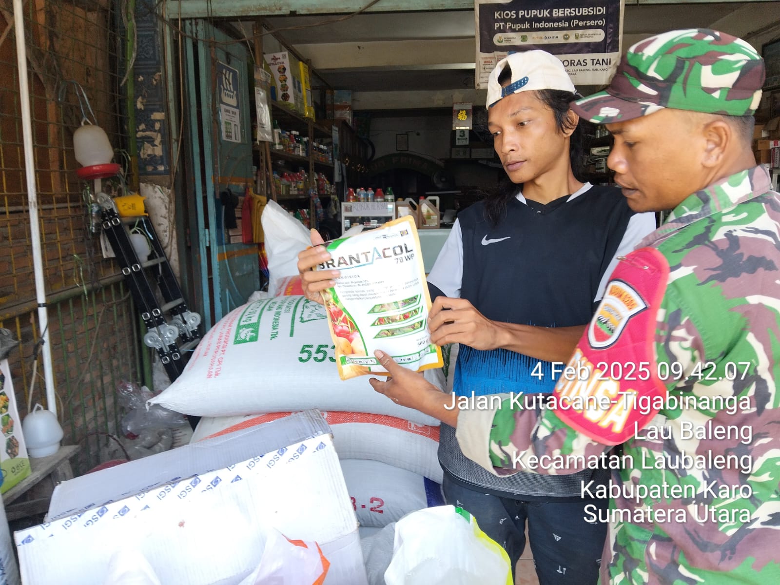 Tanah Karo. Selasa 04/02/2025. Dalam rangka menyukseskan Ketahanan Pangan Nasional dalam mewujukan Swasembada Pangan Nasiola Tahun 2025, Danramil 09/Laubaleng jajaran Kodim 0205/Tanah Karo Kapten Inf Gandhi N. Hartanto perintahkan para anggitanya khususnya para Babinsanya melaksanakana kegiatan monitoring mengecek harga dan ketersediaan stok pupuk maupun obat-obatan pertanian dalam rangka memastikan kebutuhan yang diperlukan oleh masyarakat warga wilayah binaana yang bermata pencaharian sebagai petani terpenuhi, sehingga proses bercocok tanam tidak terhambat.