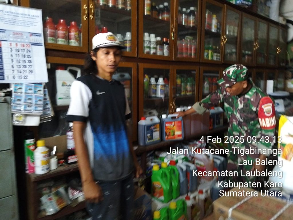 Serka Hartonon Pinim juga bertugas di Koramil 09/Laubaleng sebagai Babinsa pada hari (04/02) di wilayah binaan Desa Laubaleng Kecamatan Laubaleng Kabupaten Karo-Sumatera Utara melaksanakan monitoring pengecekan situasi wilayah dan silaturahmi dengan masyarakat, serta mengunjungi Toko Pertanian milik Bapak Karo-karo Surbakti pemilik Toko Pertanian UD. HORAS di Jalan Kutacane Desa Lauableng.