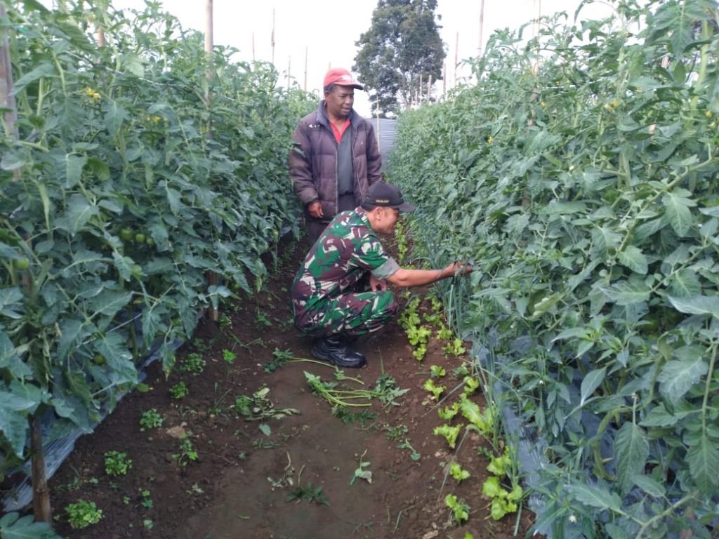 Tanah Karo. Sabtu 15/02/2025. Kegiatan Pendampingan Pertanian dan Komsos (Komunikasi social) dilaksanakan oleh Sertu Tulus Siahaan bertugas sebagai Babinsa di Koramil 03/Berastagi jajaran Kodim 0205/Tanah Karo pada hari ini (16/11) bertempat di wilayah binaannya yaitu Lahan Pertanian yang terletak di Dusun V Desa Rumah Berastagi Kecmaatan Berastagi Kabupaten karo Sumatera Utara, tepatnya dilahan pertanian b apak Idaman Ginting yaitu membantu merawat tanaman Toman Sayur sambil melaksanakan Komsos (Komunikasi sosial) bersilaturahmi secara humanis.