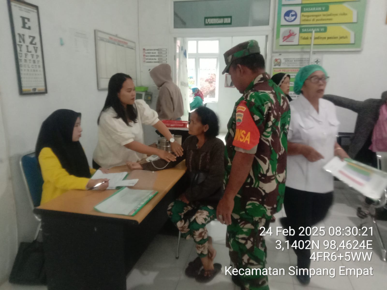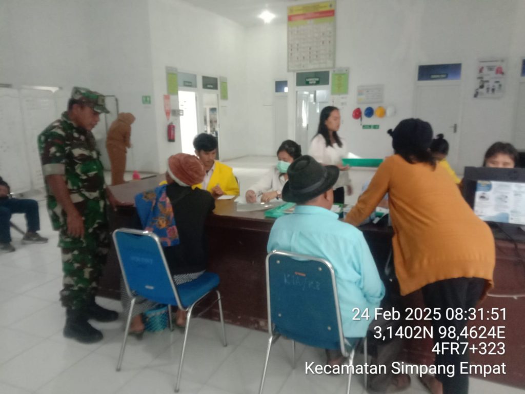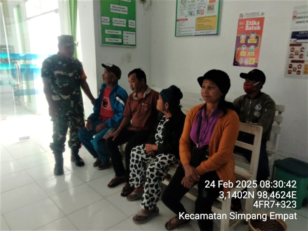 Tanah Karo. Senin 24/02/2025. Pelaksaan Komunikasi Sosial (Komsos) bersilaturahmi dengan pihak Puskesmas khususnya dengan Tenaga Kesehatan sambil mendampingi masyarakat terutama yang sudah Lansia berobat dan pemerikasaan kesehatan di tempat layanan kesehatan terus dilakukan oleh Prajurit Satuan Teritorial TNI AD khususnya yang bertugas sebagai para Bintara Pembina Desa yang sering disingkat Babinsa.