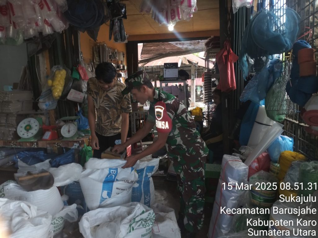 Bertugas sebagai Babinsa di Koramil 01/Barusjahe jajaran Kodim 0205/Tanah Karo Serka Tudiono Situmorang pada hari ini (15/03) melaksanakan Komsos sambil mengecek ketersediaan stok dan harga Pakan Ternak maupun obat-obatan pertenakan di  wilayah binaan untuk mencegah terjadinya kesulitan warga dalam mendapatkan barang-barang tersebut untuk ternak milik mereka akibat kelangkaan dan mahalnya harga, kegiatan ini sesuai peritah Danramil Kapten Inf Jonson E. Sembiring.