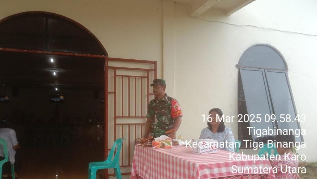 Tanah Karo. Minggu 16/03/2024. Upaya dalam memberikan rasa aman dan nyaman bagi warga wilayah binaan Umat Nasrani di wilayah binaan, sehingga para Babinsa Koramil 08/Tigabinanga jajaran Kodim 0205/Tanah Karo melaksanakan kegautan pengamanan jalannya Ibadah Kebaktian Minggu di Gereja yang ada di wilayah binaannya yaitu kelurahahn dan desa-desa yang ada di daerah Kecamatan Tigabinanga.