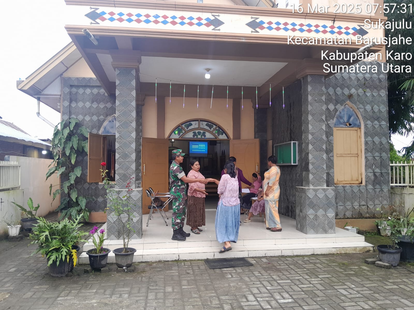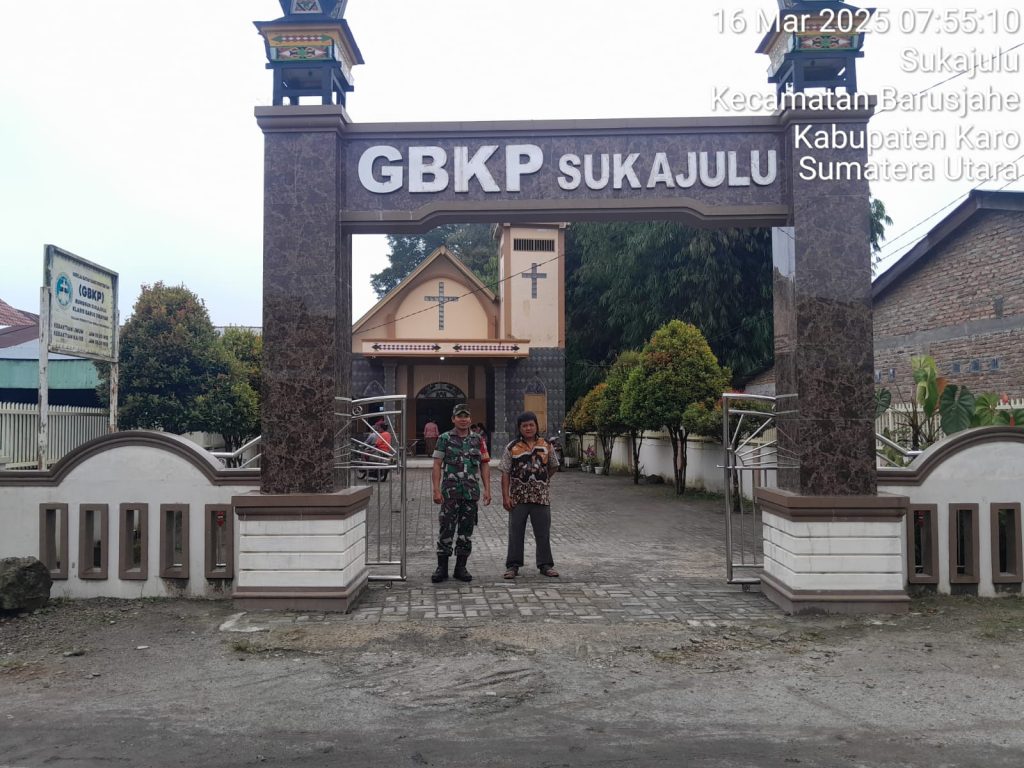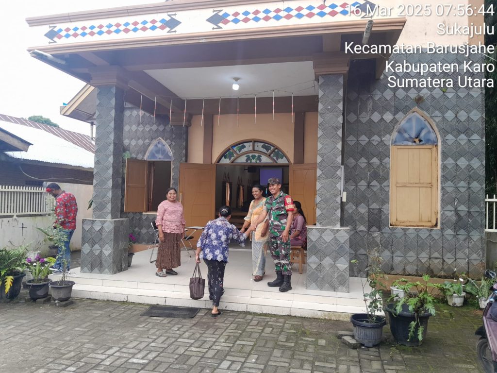 Tanah Karo.  Minggu 16/03/2025. Dalam rangka menjaga situasi wilayah binaan tetap kondusif dan untuk memberikan rasa aman kepada jemaat umat Kristiani yang sedang melaksanakan ibadah kebaktian  minggu, sehingga Danramil 01/Barusjahe jajaran Kodim 0205/Tanah Karo Kapten Inf Jonson E. Sembiring  pada hari ini (16/03) perintahkan   para anggotanya khususnya para Babinsanya membantu majelis gereja melaksanakan pengamanan kebaktian minggu di Gereja yang ada di desa binaan masing-masing.