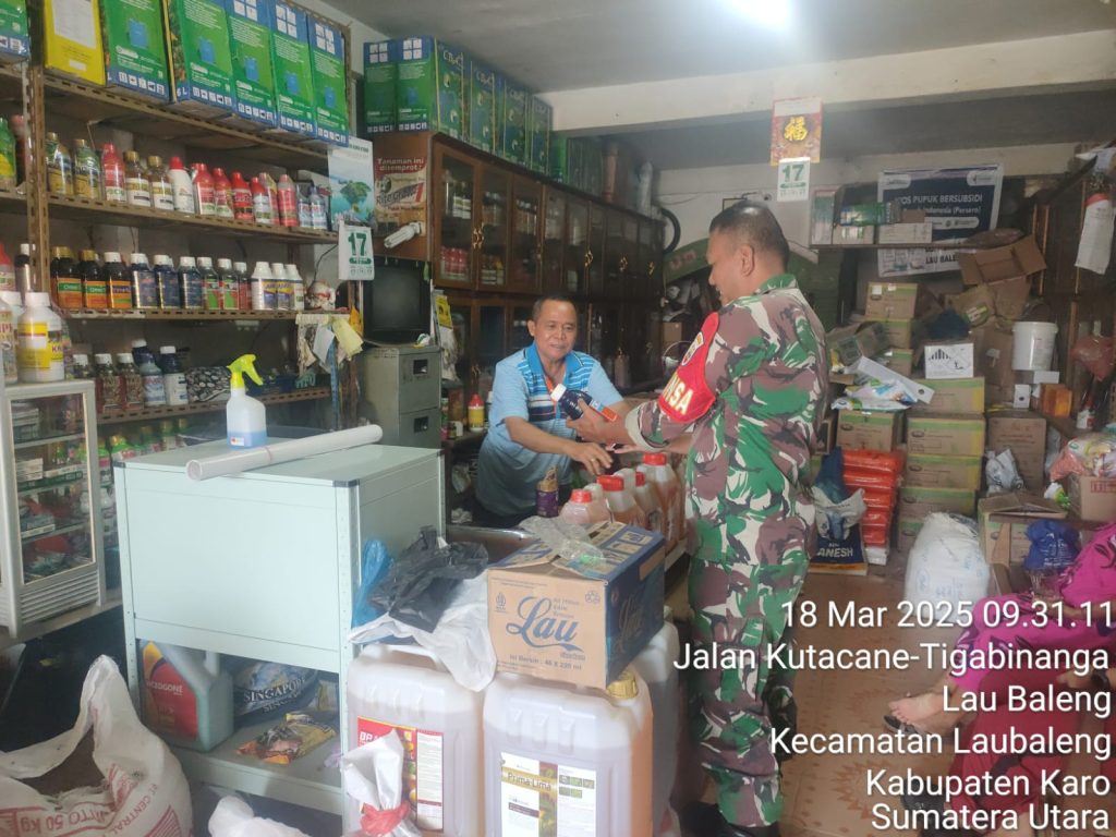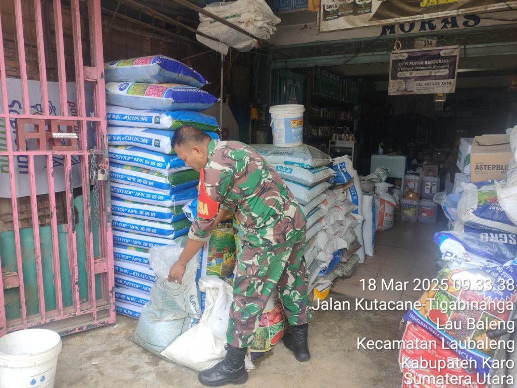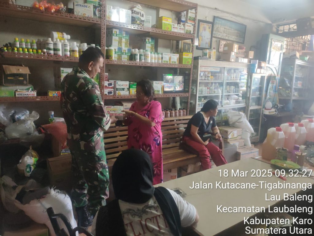 Serka M. Dian melaksanakan kegiatan Komsos sambil pengecekan harga dan ketersediaan stok pupuk maupun obat-obatan pertanian berlokasi di Toko Pertanian UD. Horas Tani Jalan Kutacane Desa Laubaleng Kecamatan Laubaleng Kabupaten Karo-Sumatera Utara, kemudian tujuannya untuk mengetahui ketersediaan stok dan harga pupuk bersubsidi maupun untuk memenuhi kebutuhan para petani warga binaan sehingga dalam perawatan tanaman lancar supaya nantinya panen berhasil dan mensukseskan Program Ketahanan Pangan Nasional serta membantu kesulitan petani dalam mendapatkan kebutuhan pupuk dan obat-obatan tanaman.