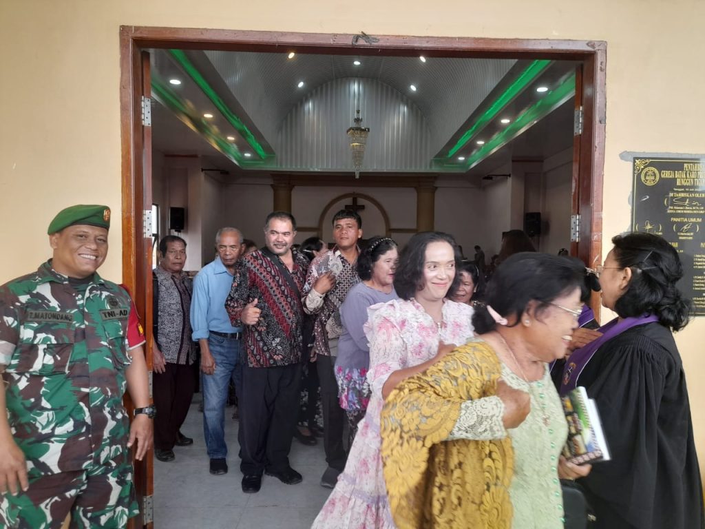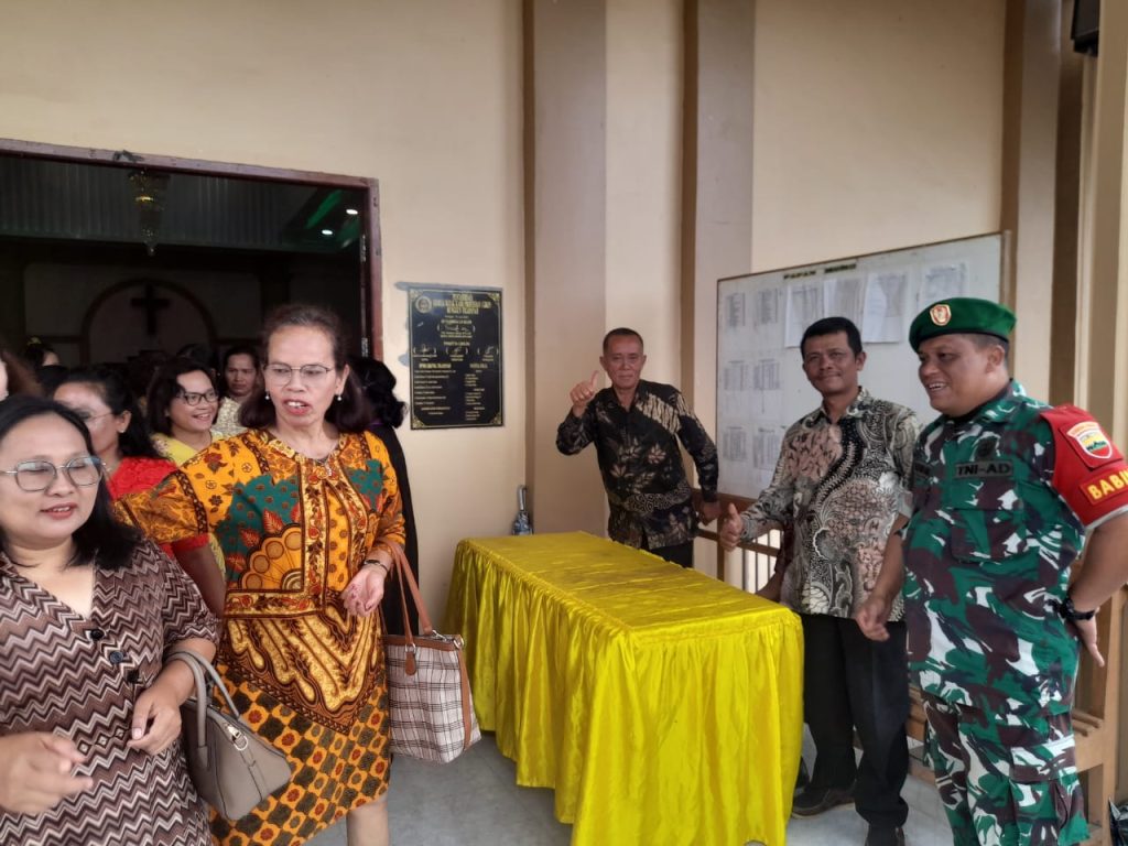 Tanah Karo. Minggu 23/03/2025. Mejelis Gereja melaksanakan Pengamanan Ibadah Kebaktian Minggu Minggu dibantu Serda Zulkarnanen Matondang Babinsa di Koramil 02/Tigapanah jajaran Kodim 0205/Tanah Karo di GBKP (Gereja Batak Karo Protestan) Runggun Tigabinanga Jalan Museum Suka Desa Tigapanah Kecamatan Tigapanah Kabupaten Karo-Sumatera Utara (23/03).
