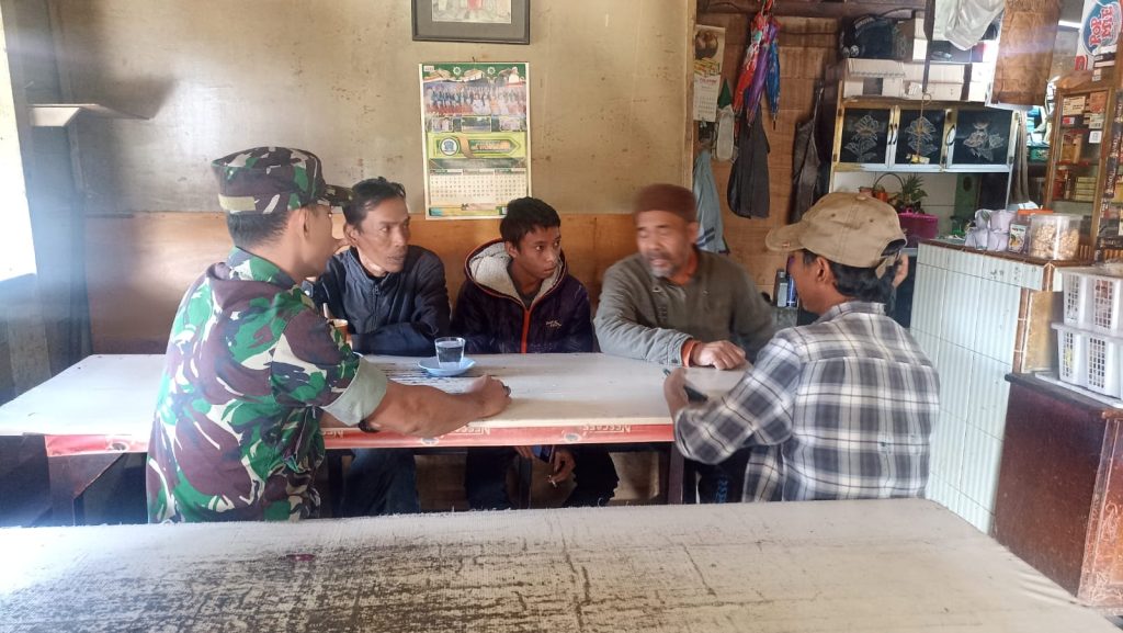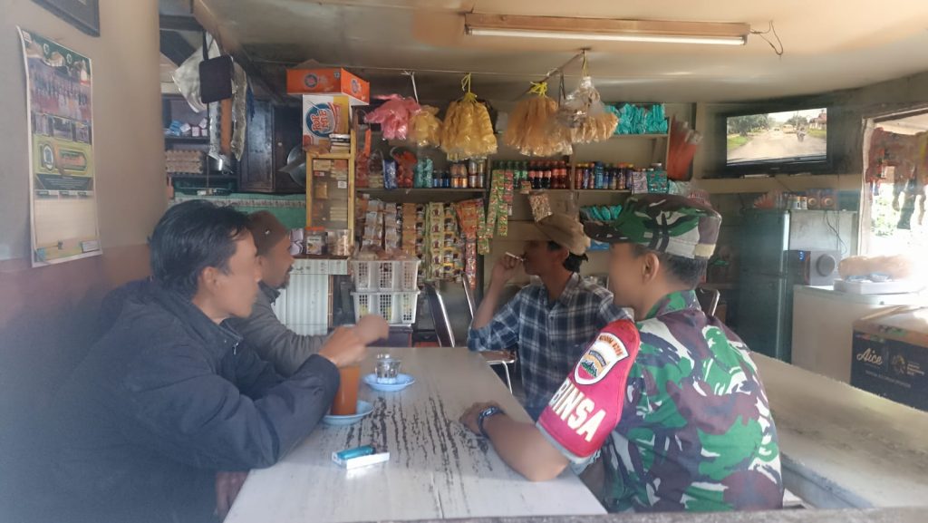 Serda Dedi Harianto yang bertugas di Koramil 03/Berastagi jajaran Kodim 0205/Tanah Karo sebagai Babinsa juga melaksanakan Komsos bersilaturahmi dengan masyarakat warga wilayah binaan di D Dusun 7 Lembah Katisan Desa Sempajaya Kecamatan Berastagi Kabupaten Karo Sumatera Utara, saat di Kedai Kopi Gelatik Babinsa berbincang-bincang dengan masyarakat Bapak Gelatik, Ridwan, Asari dan toni maupun warga lain yang sedang bersada di tempat ini.